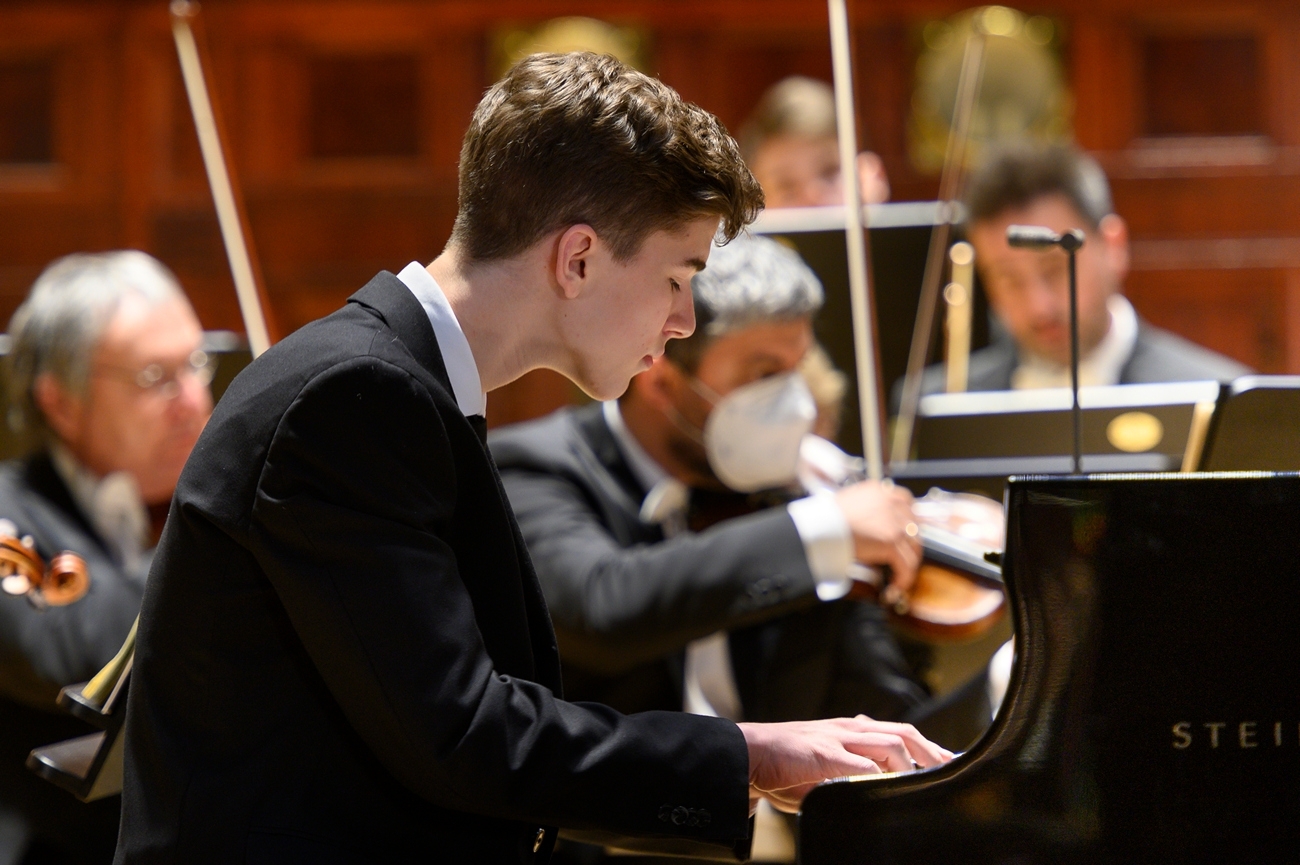 Nejlepší studenti Gymnázia a Hudební školy hl. m. Prahy, přes velké komplikace, které způsobila pandemie koronaviru, natočili ve Smetanově síni Obecního domu 8. dubna koncert k poctě houslistovi Josefu Sukovi, a to s domovským Symfonickým orchestrem hl. m. Prahy FOK, který dirigoval Radek Baborák. Na této stránce bude zítra, v sobotu 1. května, od 19:45 hodin přístupný záznam, ve kterém coby sólisté, kteří zvítězili v celoškolském konkurzu ve školním roce 2019/2020, vystoupí klavíristé Pavol Praženica a Matěj Pinkas, hobojistka Jana Slavíková, klarinetistka Julie Rimarčíková, houslisté Johana Kubánková a David Hernych a violoncellista Jakub William Gráf. V průběhu večera zaznějí skladby Antonia Vivaldiho, Antonia Pasculliho, Ludwiga van Beethovena, Johannesa Brahmse, Ondřeje Kukala a Edvarda Griega. Zakoupením online vstupného mohou zájemci podpořit uměleckou činnost studentů v následujících letech a možnost uskutečnění dalších finančně náročných projektů školy. Níže přinášíme postřehy posledního z účinkujících, klavíristy Matěje Pinkase, který přednesl sólový part druhé a třetí věty slavného Griegova Klavírního koncertu.