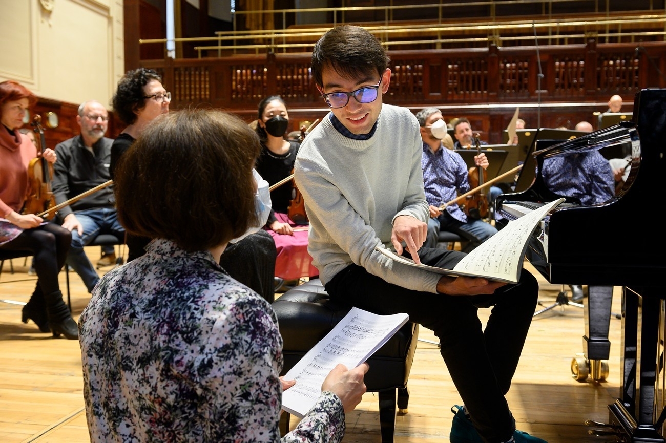 Během příprav v březnu byla epidemiologická nařízení opravdu velmi přísná, a tak nebyla jakákoliv možnost si program ohrát před publikem. „Poslední koncert jsem odehrál na hudebních kurzech v Soběslavi v červenci. Chyběly mi zejména opakované korepetice s druhým klavírem, které by před takovou akcí byly běžné. Hodně mi pomohl můj táta, který hrou z partitury suploval různé nástroje v orchestru a několikrát si se mnou koncert doma zahrál. I díky němu jsem si byl naprosto jistý v souhře,“ pochvaluje si rodinnou spolupráci Matěj, který považuje za obrovské štěstí, že má doma k dispozici koncertní křídlo, a roční domácí studium pro něj tedy nepředstavovalo takový problém jako třeba pro některé jeho spolužáky. „Nedokážu si představit hrát rok na nějaký horší klavír a potom přijít na zkoušku a začít hrát s orchestrem koncert na Steinway za několik milionů,“ říká a pokračuje: „Přes všechny komplikace to byl nepopsatelný pocit si po roce zahrát na takový nástroj. Klavír má dokonalý zvuk, vyrovnanost, barvu, nádherné znělé basy a všechno se v sále neslo až do posledních řad. Další úroveň radosti přišla, když se poprvé na zkoušce rozezněl orchestr. Byla to moje první zkušenost se symfonickým orchestrem a sedět na stejném podiu za klavírem bylo fantastické. Celý dojem mi ještě dotvářely nádherné prostory Obecního domu. Bylo to jako zázrak si zahrát v této pro kulturu složité době, a navíc ve Smetanově síni!“
