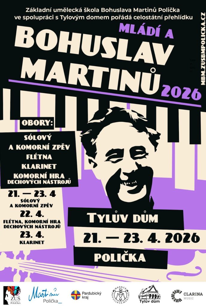 V rodišti Bohuslava Martinů se i letos setkají žáci základních uměleckých škol i studenti konzervatoří, aby poměřili své interpretační dovednosti v oblasti vokální a dechové hudby. Přehlídka Mládí a Bohuslav Martinů, která dlouhodobě klade důraz na interpretaci skladatelova díla, patří mezi významné platformy pro prezentaci nastupující generace hudebníků. Do letošního ročníku, který opět pořádají ZUŠ Bohuslava Martinů Polička ve spolupráci s Tylovým domem, se přihlásilo celkem 212 účastníků ve věku od pěti do dvaceti let a organizátoři upozorňují, že zájem výrazně převýšil kapacitní možnosti jednotlivých kategorií. O zařazení tak rozhodovalo pořadí přijatých přihlášek.