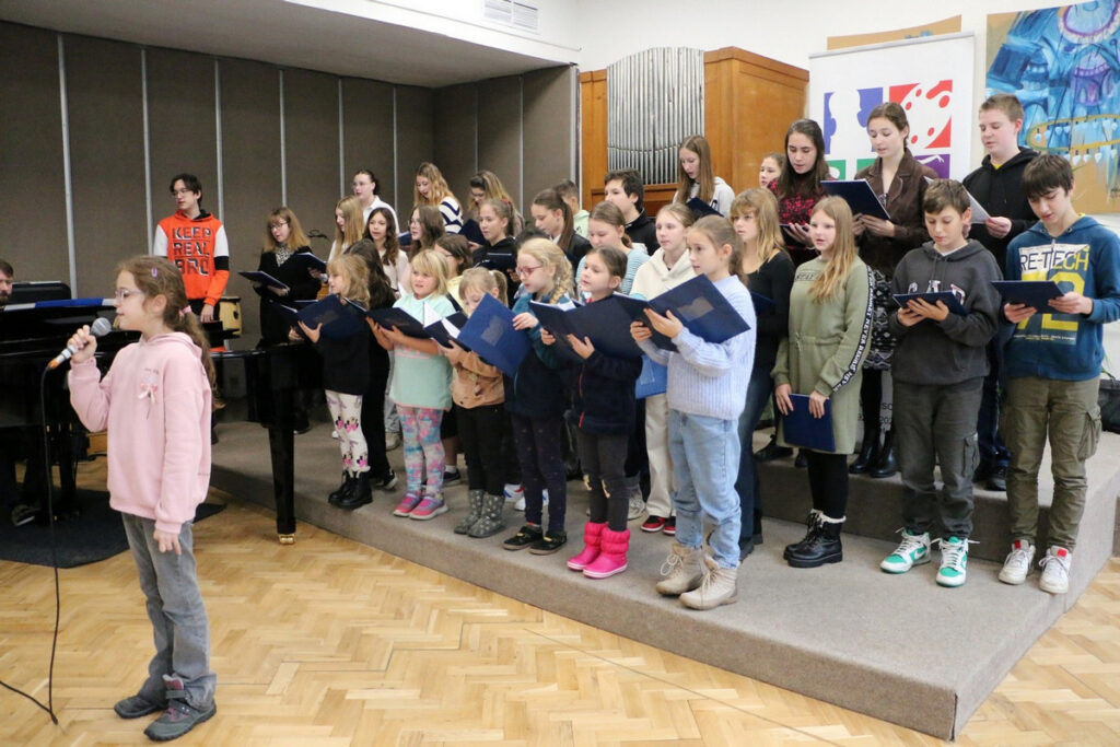 Je středa 13. listopadu, první projektový den. V malém sále českolipské ZUŠ se před polednem pilně rozezpívávají asi tři desítky dětí. Mísí se tu členové vícera pěveckých uskupení: od nejmladších ve sboru Korálky až po věkově různorodé Sborucení, kde zpívají žáci, kteří jinak studují hru na některý z hudebních nástrojů.