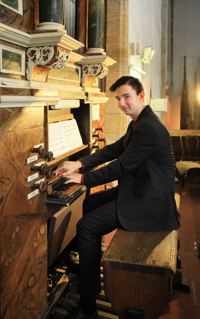 Student HAMU Lukáš Dvořák se v Českém Krumlově představil odlišnými kompozicemi. Nejprve v jeho podání zazněla půvabná Ciaccona e moll, BuxWV 160 Dietricha Buxtehudeho (1637–1707), skladatele, který se stal vzorem většiny velkých skladatelů vrcholného baroka. Skladba celkem jednatřicetkrát variuje krátkou basovou linku. Druhou a třetí kompozici uvedenou Dvořákem představovaly dvě části – Fantastico (č. 2) a Allegra danzabile (č. 5) zesuity Quasi Manualiter Pierra Damiana Perrettiho (*1974), psané roku 1997 pro historické dvoumanuálové varhany jihoněmeckého a rakouského baroka. Byly jediným exkurzem do současné varhanní tvorby. Jejich tvůrce, rodák z Vicenzystudoval hru na varhany a skladbu ve svém rodném městě, později v Padově. Za studiem se však rozjel i do Vídně na varhanní oddělení tehdejší Hochschule für Musik und darstellende Kunst, později ho studia zavedla do Hamburku. V letech 2002–2009 působil jako profesor varhanní hry na Hochschule für Musik und Theater v Hannoveru, od 2009 působí na hudební univerzitě ve Vídni. Vede mistrovské kurzy, je členem porot mezinárodních soutěží, komponuje vokální a instrumentální hudbu od sólových děl až po díla orchestrální.