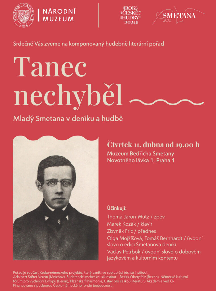 Pražské Muzeum Bedřicha Smetany uvede u příležitosti dvoustého výročí narození skladatele komponovaný hudebně-literární pořad Tanec nechyběl… Mladý Smetana v deníku a v hudbě. Mezinárodní koprodukce, která dohromady svedla tři německé instituce, Plzeňskou filharmonii a Ústav pro českou literaturu Akademie věd České republiky, ústí v šest provedení, která kromě Prahy a Plzně uvádějí i čtyři německé metropole.