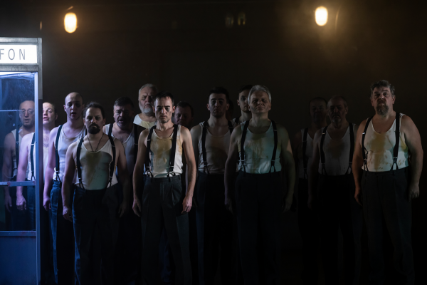 „Hra začíná mužským sborem á cappella, zpívají ponurou vojenskou píseň Katonadal, o údělu mužů, kteří musí válčit, jít do boje, nechat se mrzačit a zabíjet, ale nikdy nesmí plakat.“