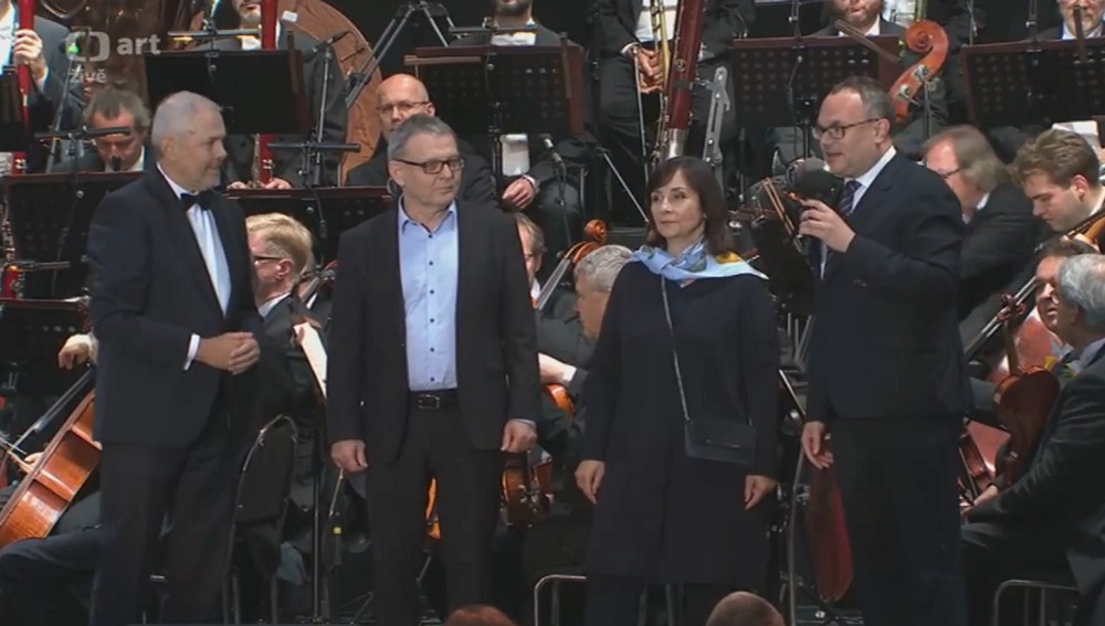Odlehčeně se nesou i krátká vystoupení na pódiu. Co všechno nám koronakrize vzala, je jasné. Ale co nám případně přinesla? Ředitelka Národního památkového ústavu Naděžda Goryczková říká, že schopnost lépe zacházet s technologiemi a virtuálním prostředím. Ministr kultury Lubomír Zaorálek navazuje, že jsme nicméně zjistili, že technologie ani virtuální prostředí nemohou nahradit živou hudbu, živá setkávání. Poděkování Davida Marečka zdravotníkům je pak upřímné a vážné.