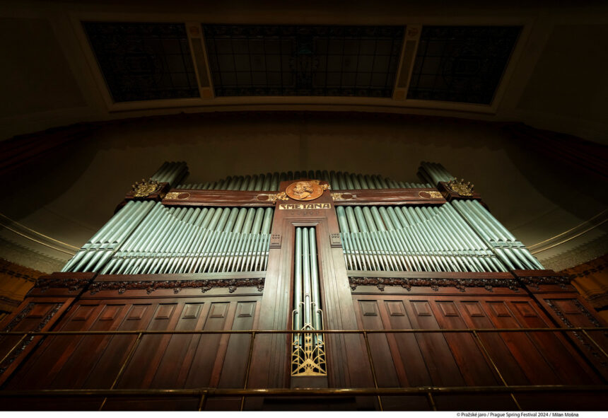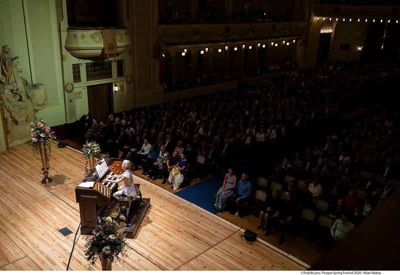 Monumentální varhany z dílny Heinrich Voit und Söhne z Durlachu u Karlsruhe s doplňujícími velkými píšťalami varhanáře Jana Tučka z Kutné Hory a tehdejší novinkou, totiž posuvným hracím stolem, byly postaveny ve Smetanově síni Obecního domu v Praze roku 1912. Nástroj se k naší škodě sólově příliš nevyužívá, s výjimkou tří matiné v sezoně, pořádaných orchestrem FOK. Letos jej po delší době využil Mezinárodní hudební festival Pražské jaro a uspořádal varhanní koncert, když k recitálu pozval renomovanou sólistku Ivetu Apkalnu, v současné době titulární varhanici Labské filharmonie v Hamburku.