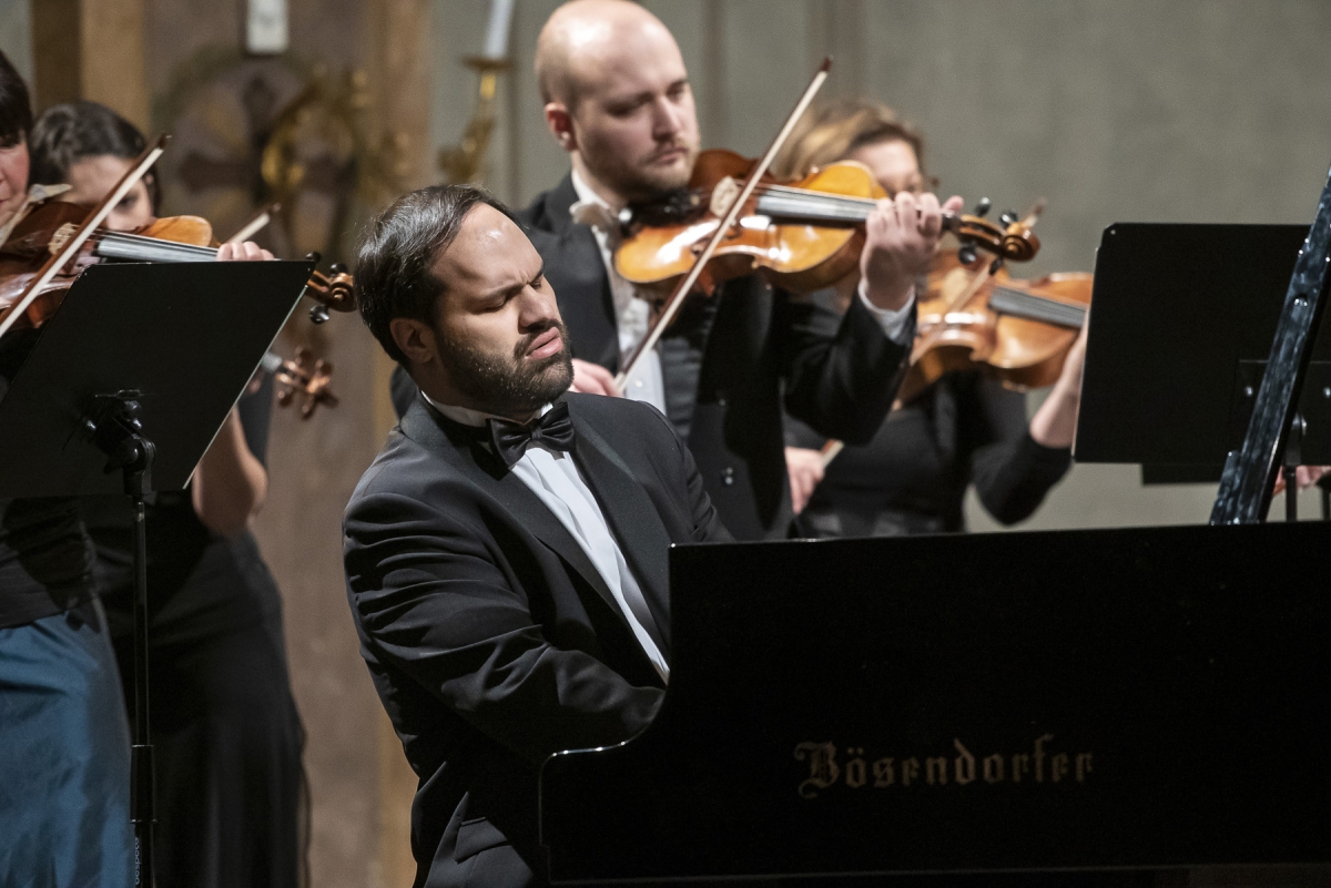 Alfred Schnittke, Felix Mendelssohn-Bartholdy, Wolfgang Amadeus Mozart… a Jan Bartoš. Silná sestava osobností v programu Pražského komorního orchestru. Mladý pianista byl jeho magnetem a vrcholem. Přesto, že prostředí a akustika kostela svatých Šimona a Judy nejsou pro klasicistní klavírní koncert ani případné, ani ideální.