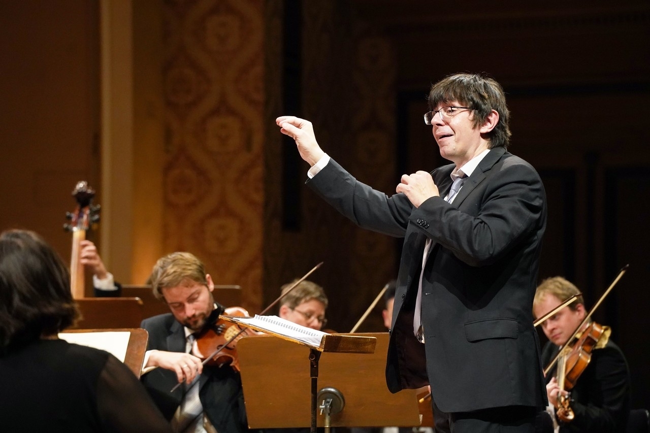 Čtyřicátá z Mozartových symfonií, prostřední z vrcholné trojice těch posledních, od prvních tónů vyjevila charakteristiky celého večera. Střídmý, jakoby až nedostatečný zvuk smyčců, zcela odhalené party dřevěných dechových nástrojů a pečlivě odstiňované údery tympánů, krásně, tón za tónem vypracovanou dynamiku…, tempa vyzařující energii, jindy tempová pozastavení… a celek mimořádně muzikálně dýchající, aniž by se objevilo pokušení dívat se kupředu k budoucímu romantismu. Václav Luks vedl nevelký orchestr v symfonii náruživě, s akcenty a drobnými echy, zvýrazněnými výstupy některých linek, s novými a novými podněty, roztančeně i dramaticky. Modeloval tok hudby neúnavně, zajímavě, svižně… Byl to samozřejmě v asketickém zvuku a s jedinečnými proporcemi mezi sekcemi souboru zcela jiný Mozart než od komorních filharmonií či symfonických orchestrů. Ale právě proto, abychom si tak odlišného Mozarta užili, jsme všichni do Rudolfina ten večer přišli.