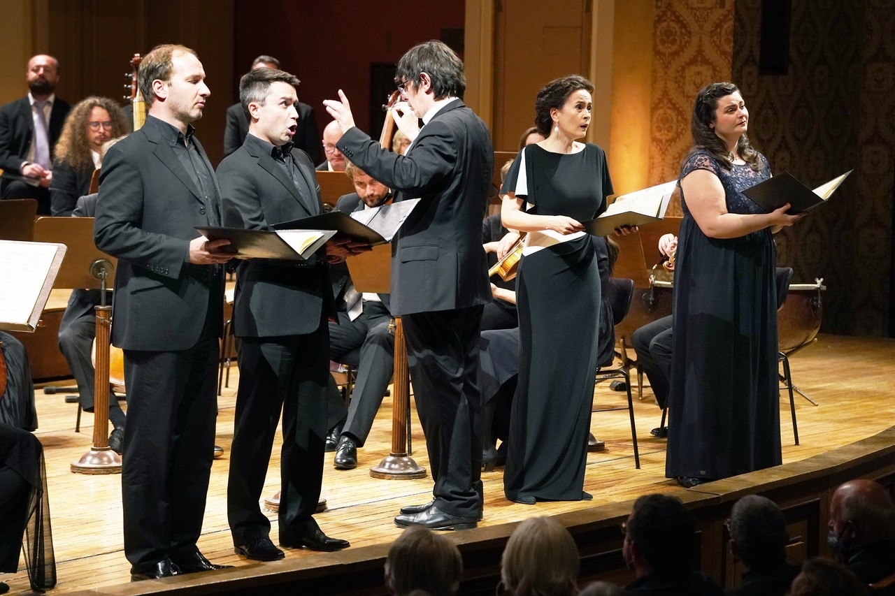 Stejně jako v symfonii zněl orchestr, nyní navíc s varhanním pozitivem, basetovými rohy a trombony, nádherně transparentně. Sbor přidal zřetelnou dikci, jistotu a elektrizující tah a přesnost v polyfonii, komorní, a přece víc než dostatečné dynamické rozpětí. Sólisté se vyrovnaně doplňovali, ať už stáli a zpívali bokem, nebo přišli na obvyklé místo doprostřed pódia: sopranistka Simona Šaturová byla spíše křehká, altistka Henriette Gödde sytě pevná, basista Tobias Berndt měkkce dokonalý. Jen tenorista Eric Stoklossa, jinak skvělý bachovský Evangelista a vůbec zajímavý sólista řady Luksových koncertů, jako kdyby se tentokrát trochu zvukově ztrácel.