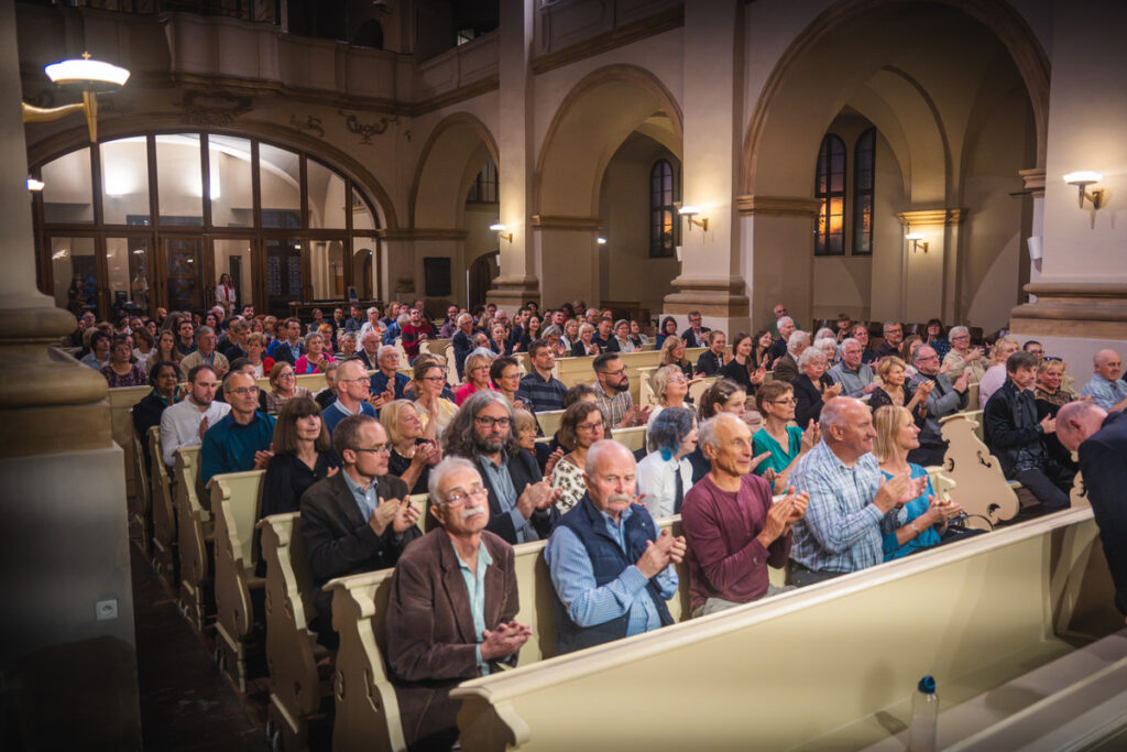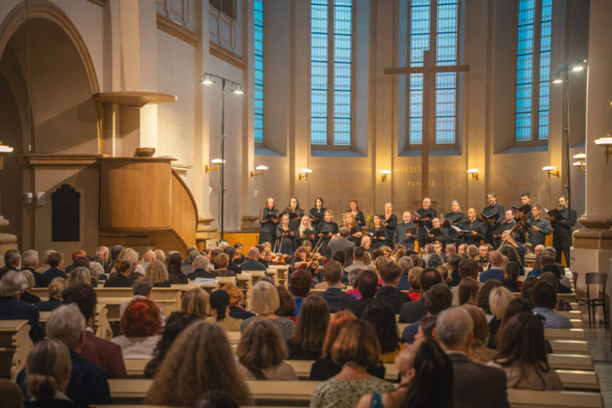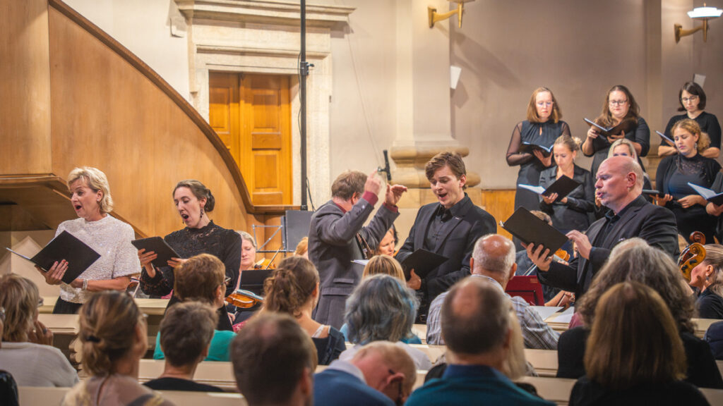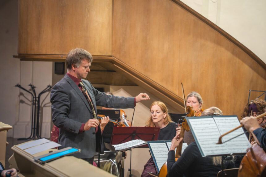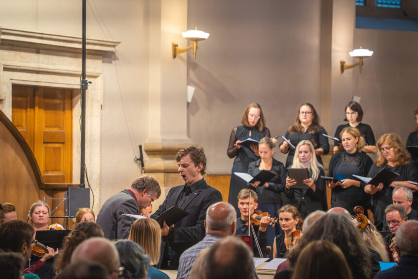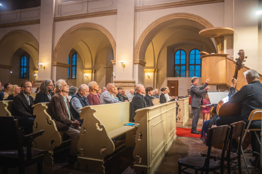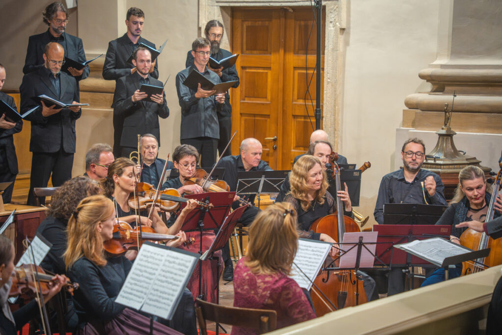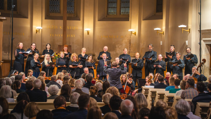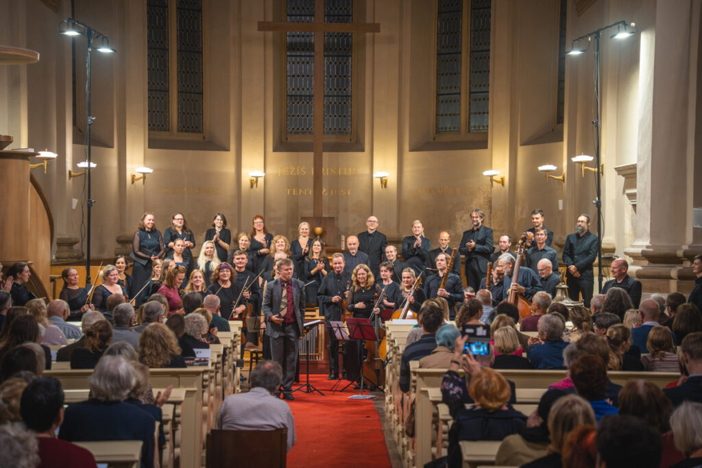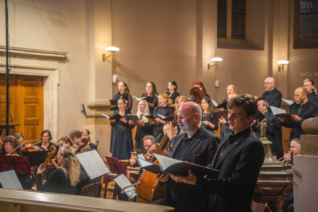 Dirigentské vedení Marka Štryncla bylo u pražských evangelíků zase jednou usměvavé, zapálené, inspirující i radostné, tempa přiměřená a hudební sdělení čitelná. Uskupení ukázalo muzikalitu pojetí. To množství not! Z první židle je pečlivě, starostlivě přinášela houslistka Eva Kalová – častá koncertní Magdalena Malá tentokrát seděla pouze v auditoriu –, místní rezident a „titulární varhaník“ Lukáš Vendl průběh harmonicky jistil od pozitivu, u tympánů citlivě doprovázel Jakub Eben, zástupce generace ležící o jeden stupeň pod trojicí známých bratří, trojice žesťů Jaroslav Rouček, Karel Mňuk, Josef Sadílek ušlechtile zářila. Podání orchestru mě předsvědčovalo, že má na paměti drobně problematickou a zvukově znekonkrétňující akustiku místa. Jediné, co mě rušilo, byla dlouhá spočinutí v závěrech jednotlivých částí – jevila se mi disproporční vzhledem k ostatnímu vcelku svižnému toku hudby (byť tempa by mohla být ještě daleko vyšší – mrk na pana dirigenta Romana Válka…). Tyto držené konce frází často navíc pointované jakýmsi messa di voce působily neorganicky. Po dvou číslech s účastí sboru orchestr v ose pořadu, Händelově Concertu grossu, osaměl. Vítané zpestření témbrovou jinakostí celkového zvuku ukázalo instrumentální těleso zase v trochu jiné, snad ještě virtuóznější poloze. Bravi!