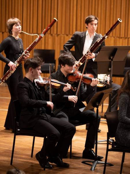 Pak nastoupila dechová sekce Barokního orchestru Pražské konzervatoře, aby spolu se smyčci zahrála Sinfonii č. 2 in D „ Der Sturz Phaëtons“ Karla Ditterse von Dittersdorf. Karl Ditters strávil více než polovinu svého života ve Slezsku a na Moravě ve službách vratislavského biskupa. Ten ho materiálně zajistil a Ditters měl nejen možnost skládat, ale založil i biskupskou kapelu a operní divadlo, kde uváděl především vlastní díla. Po nuceném odchodu z Javorníků, kde Josef II. zřídil nucenou správu, dožil svůj život na zámku Červená Lhota. Bohužel již ve finanční tísni a těžce nemocný. Zanechal po sobě 120 symfonií, 45 oper a řadu duchovních a komorních děl. K jeho vrcholným dílům patří 6 symfonií na slova Proměn od Publia Ovidia Nasa. Jednou z nich je i symfonie č. 2 „Pád Faethonův“. Právě dechy v ní hrají významnou roli. Již první věta začíná mohutným zvukem lesních rohů (Olexander Shkoda a Jindřich Zýka), aby poté dala vyniknout příčné flétně (Vojtěch Čermák). Druhá věta je založena na sólu dvou střídajících se fagotů (Emílie Smoláková a Jan Čurda). Mimochodem i zde se projevila nápaditost Jakuba Kydlíčka. Fagotisté náhle opustili svá místa v orchestru a přesunuli se mimo, aby se tak zdůraznila jejich sólistická role. Když jsem vyjmenoval hráče, kteří měli významnější part v symfonii, vyjmenováni by vlastně měli být všichni. Na to, jak jsou mladí hráli skvěle.