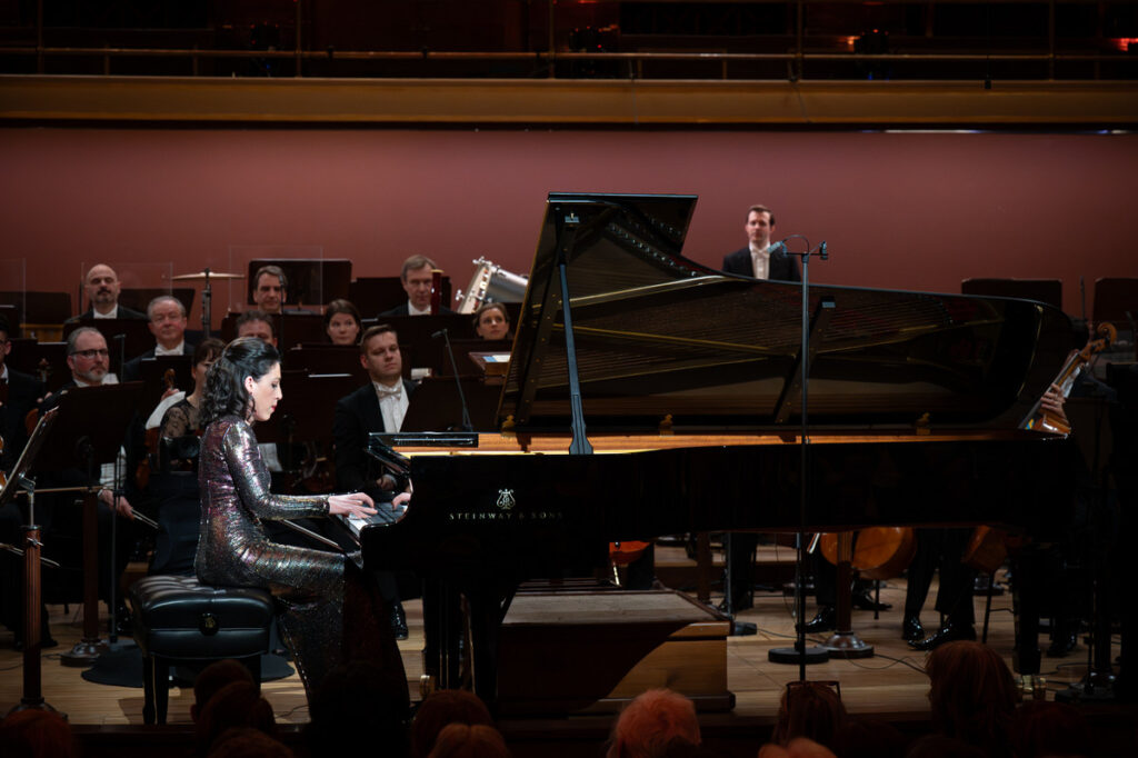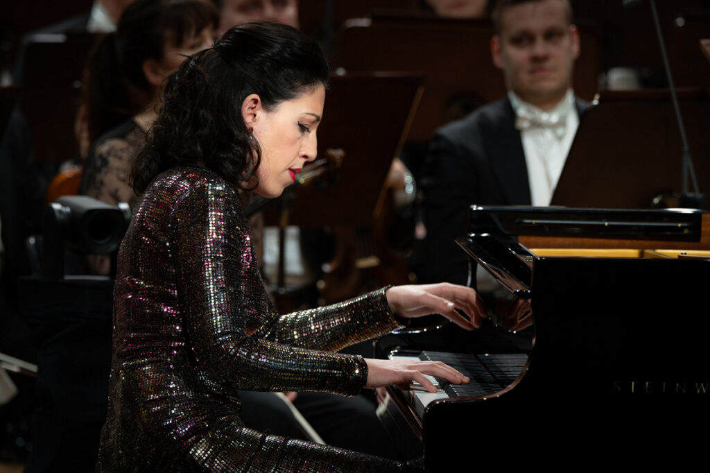 Druhým číslem programu byl Klavírní koncert č. 1 g moll, op. 25 Felixe Mendelssohna-Bartholdyho. Jeho sólistkou byla mladá italská pianistka Beatrice Rana. Tuto jedinečnou umělkyni jsme měli v Praze možnost poprvé slyšet v roce 2019, kdy vystoupila – jako šestadvacetiletá – na zahajovacím koncertu Klavírního festivalu Rudolfa Firkušného. Jestliže už tehdy nadchla publikum svou fantastickou technikou a uměleckou opravdovostí, pak v Mendelssohnově Klavírním koncertu g moll snad postoupila (ačkoli se to zdá být nemožné) ještě o kus dál. Její technika v rychlých krajních větách byla fascinující a jejich tempa skutečně hraniční. Z hudby přímo sálala energie, přičemž mnohé pasáže zněly až démonicky. Zvukové efekty, kterých Rana závratnými tempy a brilantními prsty docílila, působily nově a neslýchaně; některá místa koncertu jsem stěží poznával. Při tom všem nebyl ale na umělkyni znát ani náznak námahy, spíš naopak: její pohyby byly – při veškeré dokonalé funkčnosti – uvolněné a elegantní. Pokud jsme v krajních větách mohli vnímat jakési démonické síly, pak jímavé melodie volné věty zněly tak, jako by se k nám snášely z nebe. Klavíristka je přednášela v hlubokém soustředění, svobodně, téměř improvizačně, skoro jako by si jen tak meditovala sama pro sebe. A pianissima, která v této větě dokázala vyčarovat, už snad ani nebyla z tohoto světa. Umělkyně v Mendelssohnovi opět potvrdila, že patří k současné pianistické extratřídě. Alain Altinoglu nepochybně věděl, s kým má tu čest. Naslouchal klavíristce se zjevným zaujetím a potěšením a bylo na něm vidět, že si Mendelssohnovu hudbu užívá spolu s ní. A zcela samozřejmě a přirozeně dělal vše pro to, aby klavíristce otevřel co největší prostor k seberalizaci.