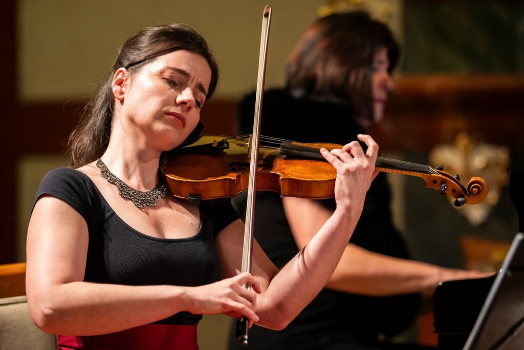 Po přestávce se obnovil původní posaz, klarinet vystřídaly housle Markéty Janouškové. Houslistka mě v průběhu večera zaujímala svým krásně jasným, čirým tónem; jakožto nová členka se svým zkušenějším kolegům zajisté vyrovná, přináší zase vlastní interpretační nuance, jež v kontextu souboru přináší osvěžující prvek. Hra Jana Páleníčka tvoří do jisté míry protipól hry houslistky. U Paleníčka je znát herní zralost, jeho tón je naopak spíše matný, což komplexitě divákova zážitku možná jen prospívá.