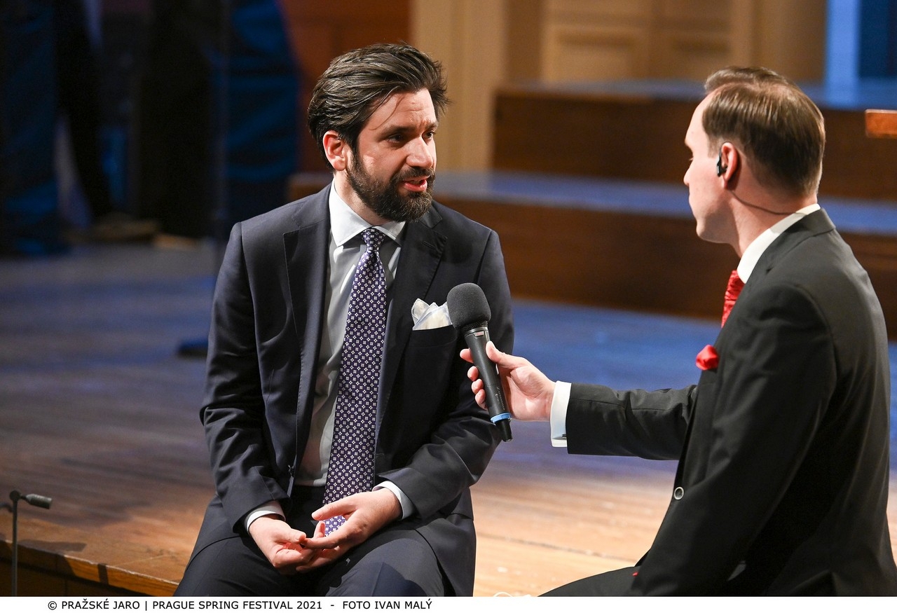Po Brucknerovi následovala zasloužená přestávka: zregenerovat po této náloži bezpochyby zpěváci potřebovali, čekala je totiž druhá půle koncertu, která byla, jak se ukázalo, ještě náročnější. Přestávku vyplnil už zmíněný rozhovor Marka Šulce s Petrem Fialou a doplnil jej ještě krátký, tentokrát živý rozhovor s dramaturgem Pražského jara Josefem Třeštíkem.
