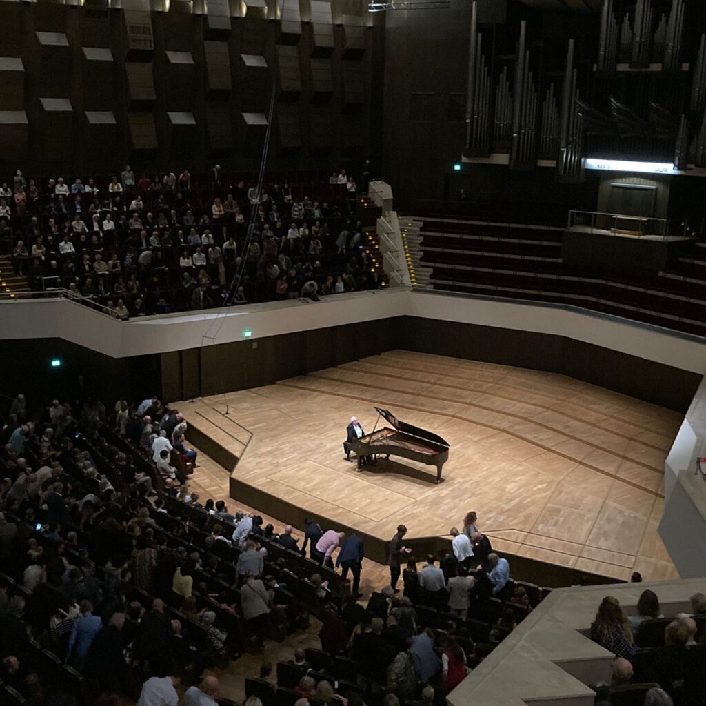 Přestože takto jezdívám za koncerty poměrně pravidelně, konkrétně do Lipska jsem vyrazil poprvé a Velký sál Gewandhausu pro mě byl něčím úplně novým a nezvyklým. Je rozlehlý, šedivý, terasovitý, potlesk v něm burácí ze všech stran, okraje balkónů jsou z leštěného kamene, posluchači na nejvýše umístěných sedadlech koukají na umělce už opravdu hodně shůry. Před začátkem koncertu se mi v něm ještě sedělo příjemně, ale jakmile Grigorij Sokolov vstoupil na pódium, uvědomil jsem si, že toto prostředí má i svoji výrazně chladnou a hodnotící stránku, obzvlášť ve vztahu k sólistovi-jednotlivci. Později během koncertu jsem jakousi nemilosrdnost tohoto místa vnímal ještě víc, když posluchači sedící v levém i pravém křídle začali klavíristu fotografovat, mnohdy i s omylem zapnutým bleskem. Jak jsou sedadla uspořádána téměř do kruhu, jak je to celé povýšené… pro člověka zvyklého na Rudolfinum sál může působit jako výběh pro šelmy v zoologické zahradě. Zajímavé je, že z Berlínské filharmonie, velmi podobného typu sálu, jsem takový pocit neměl. Možná díky světlejším barvám a ojedinělé prestiži tamního orchestru, možná proto, že tam jsem zatím byl jenom na koncertě početnějšího nástrojového uskupení, ne na recitálu.