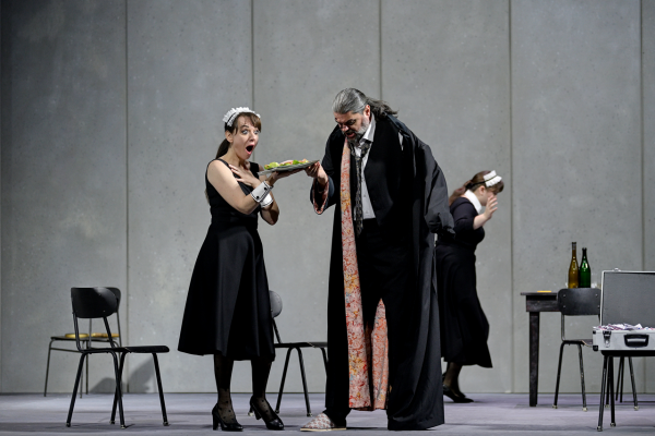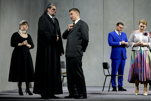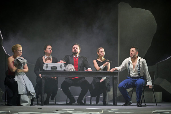 Režisér Rocc pojal jednoaktovku minimalisticky. Stůl a několik židlí stačí pro jednací prostor, postavy jsou rozestavěné po scéně s citem pro jejich sezpívání a hlasy, které spolu dobře ladí, jsou proto i vyvážené. Orchestr nemá velké obsazení a je spíš komorní, jeho úloha je však zásadní. Obsazení orchestru má rozšířenou bicí složku, nechybí zvonkohra, kastaněty nebo xylofon, banjo a saxofon dodávají hudbě taneční kolorit a rytmika je spíše taneční. Předehra je vůči jednoaktovce neobvykle dlouhá a Rocc ji využil k pantomimickému jednání vedlejších postav. Jsou to služebníci soudce Adama, kteří zde mají drobnější úkoly, které navozují příští děj. Ihor Maryshkin, Marcela GurbaĺováUrszula Kulesza zde měli příležitost k akcím, které snad mohla režie využít poněkud nápaditěji. Celkově bylo pojetí jednoaktovky spíš ponuré než satirické, jakoby na něm ležel stín smutku.