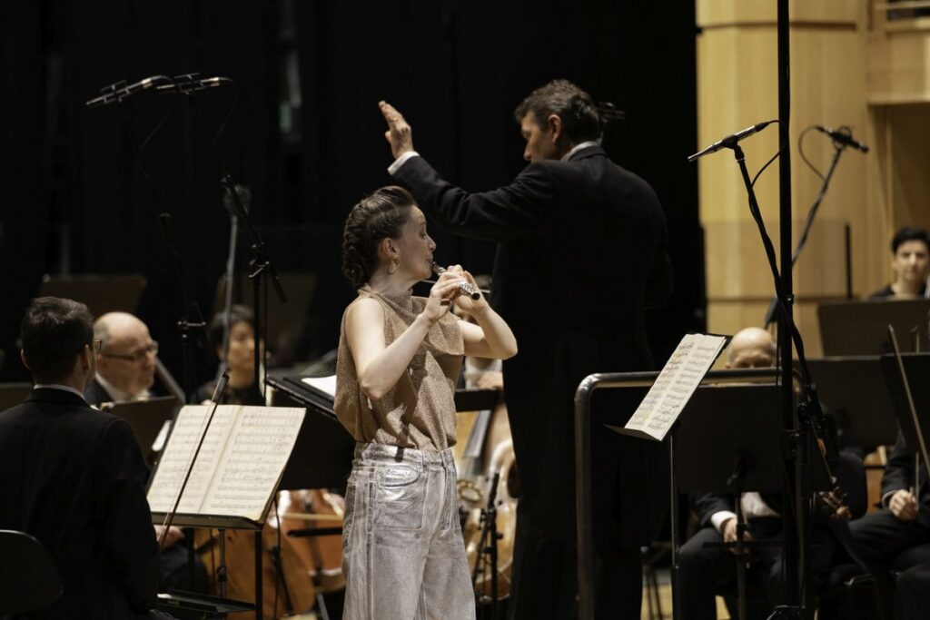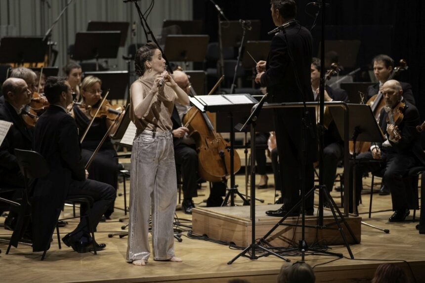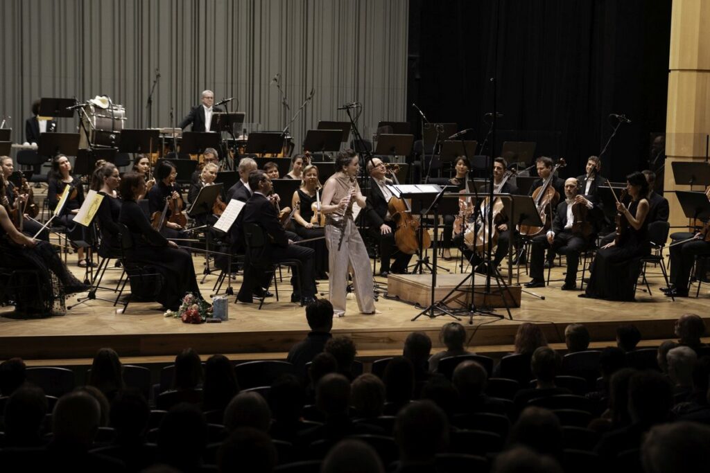 Náročná skladba pochopitelně vyžaduje prvotřídní a zasvěcenou sólistku. Jana Jarkovská, narozená v Jaroměři, jen kousek od Hradce Králové (hle, další „skrytá“ souvislost) předpoklady splnit náročný úkol naplnila vrchovatou měrou bez sebemenšího zaváhání. Z její interpretace vyzařuje suverénní zvládnutí techniky nástroje, přesná koordinace s doprovodným tělesem a – což je v tomto případě nezbytné – zkušenost s prováděním děl skladatelů 20. století a současných autorů. Flétna v jejích ústech a rukou je nástrojem plným barevných zvukových odstínů a jejich kontrastů, citlivě oddělujícím jednotlivé plochy a nálady náročného opusu. Zcela právem se sólistce dostalo obrovského aplausu publika a „nekonečné“ záplavy květin od jejích příznivců.