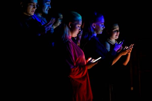 Nevtíravou symboliku děje podporuje jednak jednoduchá scéna s filmovou projekcí v pozadí a jednak hudba. Autorka se nebojí různých postupů, střídají se minimalistické plochy, názvuky lidové hudby i nepříjemné klastry. Díky hudbě se také daří děj místy odlehčit, velmi nápaditá a vtipná je například ptačí zvukomalba slova Twitter. Silný účinek mají i scény, kdy se pomocí zpěvu a hudby před divákem navenek objevují skutečnosti, o kterých za běžných okolností nevíme – titulky zpráv, které si jednotliví lidé zrovna čtou, soukromé zprávy; nebo které už ani nevnímáme – například všudypřítomná reklama. Jediné, co opeře trochu škodí, je poněkud neucelené libreto. V programu se píše, že bylo upraveno, pravděpodobně ho autoři zkrátili. Z mého pohledu tím uškodili soudržnosti celku v tom smyslu, že některé postavy nedostaly tolik prostoru, kolik by si možná zasloužily, a například postava strýce působila v celkovém kontextu nadbytečně.
