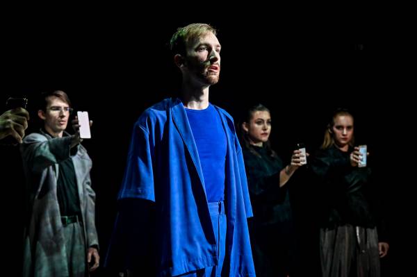 Hlavními postavami příběhu jsou tři mladí lidé – vlastně bychom je mohli označit populárním termínem „influenceři“: Klára (Karolína Pohanková), která natáčí videa o líčení, asi aby měla kam utéct od tíživé situace doma – otec jí zemřel, strýc (Jan Šmatera, j. h.) umírá na rakovinu a matka (Laura Uhorskaiová) ze zoufalství pije; její přítel Tomáš (Peter Gáč), který natáčí riskantní kaskadérská videa, aby vybral peníze potřebné na léčbu své matky; a Anyka (Veronika Zaplatilová), Tomášova sestra, která se rodině odcizila – zřejmě proto, že matka se o ni a o Tomáše v dětství příliš nestarala – a nyní se proslavila jako modelka, zpěvačka a „fitness girl“. Dějem prochází ještě Klářin nevidomý bratr Benedikt (Simeon Hána), který našel smysl ve zbožnosti a působí tu jako jediný skutečně vidoucí mezi nešťastnými a zmateně se potácejícími lidmi. Důležitou roli hraje i kolektivní postava přihlížejících, kteří vnímají svět kolem především skrze zprávy a sociální sítě.