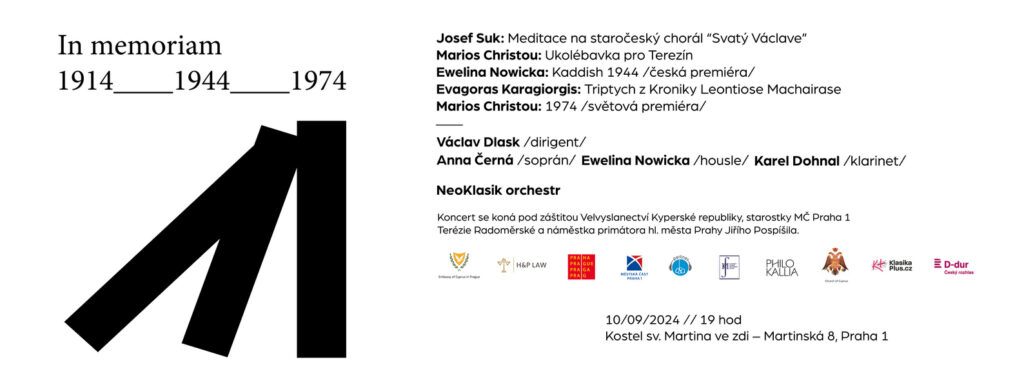 NeoKlasik orchestr chystá vzpomínkový koncert. Uskuteční se 10. září v Kostele sv. Martina ve zdi v Praze mimo jiné pod záštitou velvyslance Kyperské republiky George Yiangou. Hlavní ideou projektu je upozornit na trojí výročí významných historických událostí, které propojují Kypr, Polsko a tehdejší Československo. Symbolizují je data v rozestupu třiceti let 1914 – 1944 – 1974 a s nimi spojené konkrétní skladby a jejich autoři. Hudební těleso diriguje Václav Dlask, sólové výkony podají Ewelina Nowicka (housle), Karel Dohnal (klarinet) a Anna Černá (soprán).