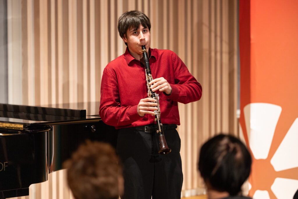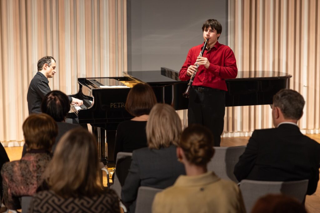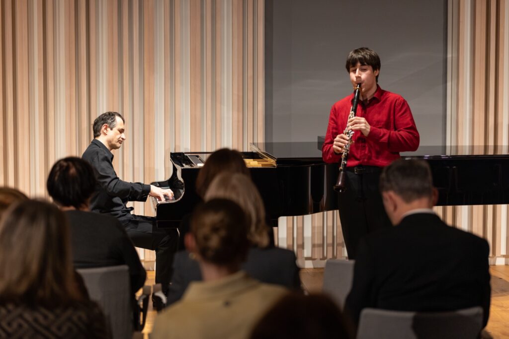 Adam Skoumal se na komorních koncertech rád prezentuje též coby autor. Ze své bohaté tvorby tentokrát vybral Variace na cikánskou melodii pro klarinet a klavír a přizval k jejich provedení Otakara Antonína Štefana, studenta Pražské konzervatoře (a možná též budoucího kolegu skladatele, neboť sympatický mladý muž vedle hry na klarinet studuje též kompozici). Po skladbě vrcholného klasicismu šlo o vítané osvěžení. Ovšem bez jakéhokoli snížení virtuózní úrovně večera, naopak. Osmnáctiletý interpret uchvátil přítomné svým nasazením, spontaneitou i brilantní technikou. Jeho nástroj se proměnil v čarovnou hůl přenášející posluchače do světa rytmické nespoutanosti, bezbřehé radosti i zadumaných nářků. A od klavíru vše jistil velkorysý Adam Skoumal. Ani „pro sebe“ nenapsal nic jednoduchého, pole však plně ovládl dechový nástroj. Přející úsměv na autorově tváři při bouřlivém potlesku mladému kolegovi hovořil jednoznačně.