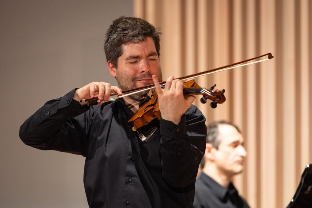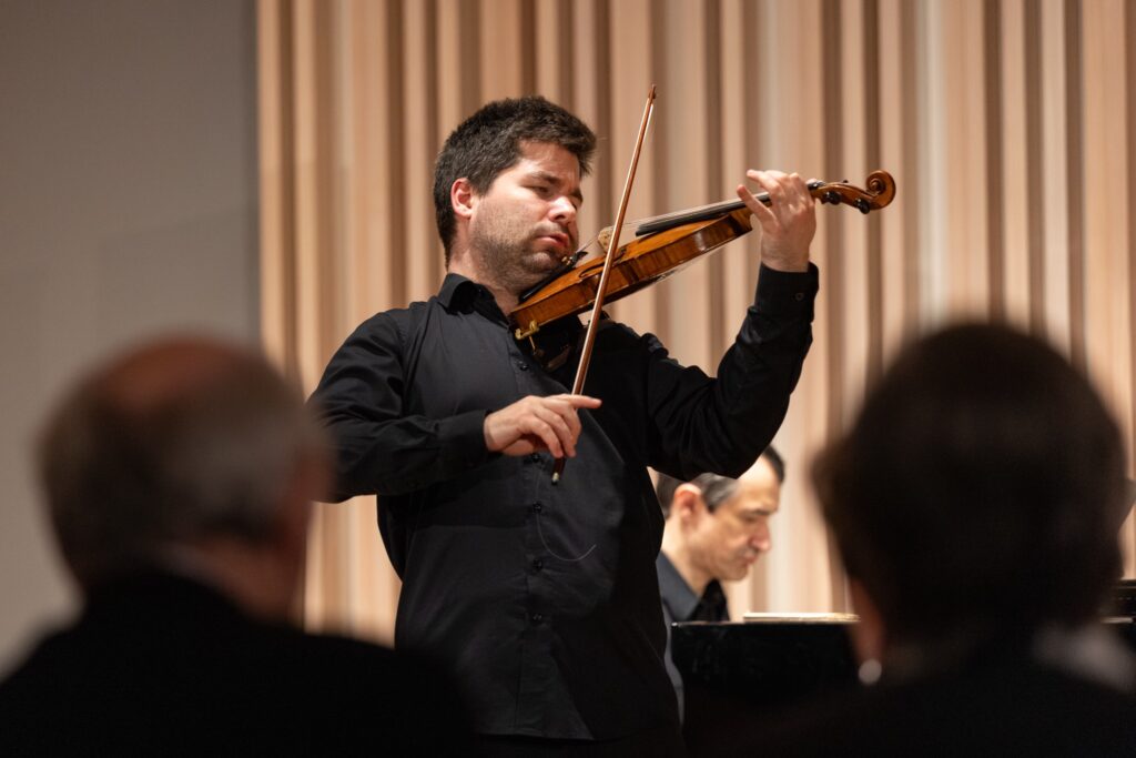 V Sonátě pro housle a klavír A dur č. 9, op. 47 „Kreutzerově“ Ludwiga van Beethovena mají party obou nástrojů pochopitelně rovnocenný význam. Každý z nich je technicky náročný, počítá s virtuozitou interpreta a schopností souhry. Témata se vzájemně rozvíjejí, doplňují i prolínají. Houslista Milan Al-Ashhab již ve svém úvodním sólu dal plně najevo hráčskou suverenitu, smysl pro proporce skladby a náležitou kolegialitu však hned poté prokázal při jemném předání „otěží“ Adamu Skoumalovi. A tak tomu bylo po celých čtyřicet minut, u obou hráčů šlo o ukázkový příklad spolupráce založené na vzájemném respektu. Oba se velmi dobře znají a nepotřebují si dokazovat, kdo z nich je lepší. Jen tak lze vystihnout autorův záměr a předat jej publiku. Beethoven hráčům nic neusnadňuje, není vyloučeno se v jeho technicky obtížné skladbě i trochu ztratit, všichni jsme jen lidé, bezvýhradná profesionalita však i tohle dokáže okamžitě napravit. Pocit, že sleduji dvě výrazné osobnosti současné české interpretační špičky, rostl každou vteřinou. Netuším, kolik to pány stálo sil, ale zanechali za sebou famózní výsledek. Volání „bravo“ bylo zcela oprávněné.
