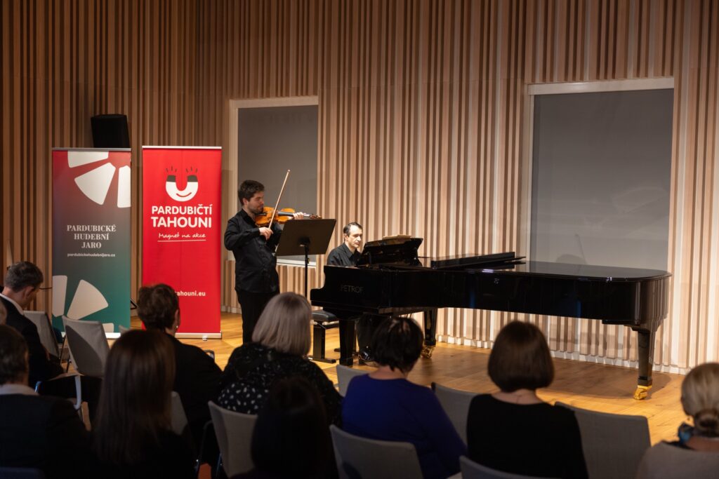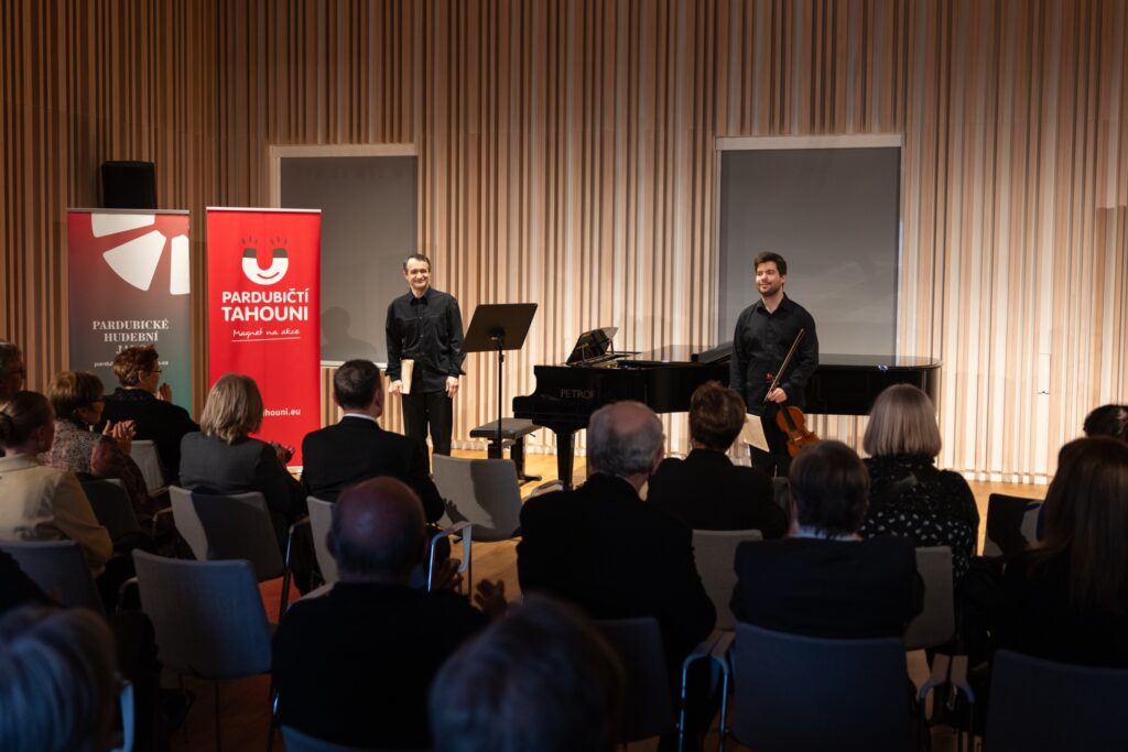 Sál v pátém patře pardubické Gočárovy galerie, zamýšlený původně jako prostor pro přednášky o výtvarném umění, se pomalu, ale jistě stává jedním z center hudebního života v krajském městě. K jeho výbavě patří vzorně ošetřovaný klavír značky Petrof, na kterém zde pravidelně zkoušejí a hrají studenti místní konzervatoře. Pro komorní koncerty v menším obsazení (sólové recitály, dua, tria) se dispozice a akustika sálu jeví jako ideální a podařilo se vyřešit i některé technické nedostatky, na něž ještě loni návštěvníci často poukazovali. Až bude uveden do provozu progresívně rekonstruovaný společenský sál na pardubickém zámku, získají Pardubice pro pořádání akcí tohoto rozsahu exkluzivní zázemí, věřím však, že i poté budou důvody se pod střechu galerie občas vracet, neboť trumfem je zde takřka rodinná atmosféra, již si pochvalují interpreti i návštěvníci. Mají k sobě vzájemně mnohem blíže než v historicky nejtradičnějším prostoru, jímž je Hudební sál radnice, v němž (asi oprávněně) dostávají před uměním přednost jednání městského zastupitelstva a kde navíc dojmy z koncertů již nějaký čas kazí necitlivě a fixně instalované projekční plátno. Vezmeme-li v úvahu i skutečnost, že nepříliš vyhovujícím se ukázal být i Malý sál v Domě hudby, a to kapacitně i svým prostorovým uspořádáním, lze rostoucí oblibu galerijního sálu zcela pochopit. Nikde jinde ve městě se posluchač sedící i v poslední řadě neocitne tak blízko vystupujícím. Vedle zvukového vjemu je může očima sledovat v úplném detailu, vnímat jejich výrazy a gesta. A nakonec jim třeba osobně poděkovat…