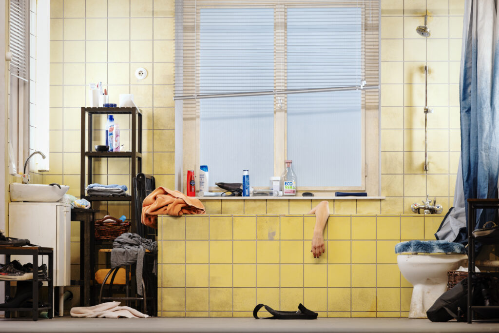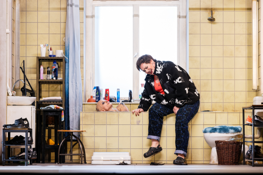 Důležitým scénickým prvkem v bytě Rusalky a Vodníka je záchod. Vodník do něj nejprve v prvním jednání zvrací a ve třetím jednání z něj Ježibaba vytáhne pro Rusalku šaty a všudypřítomné hady (?), kterými se, zejména ve třetím jednání, scéna jen hemží. V této inscenaci je jasné, že se Rusalka nemůže ve třetím jednání proměnit v bludičku. Vyleze z vany s dlouhým černým ocasem, vypadá jako dlouhý červ, a od té doby se pouze po jevišti plazí, v závěru opery Prince omotá a on zemře (nikoli v jejím náručí, ale omotán dlouhým ocasem, což patřilo k nejpůsobivějším místům celé inscenace).