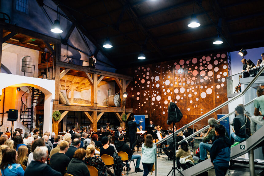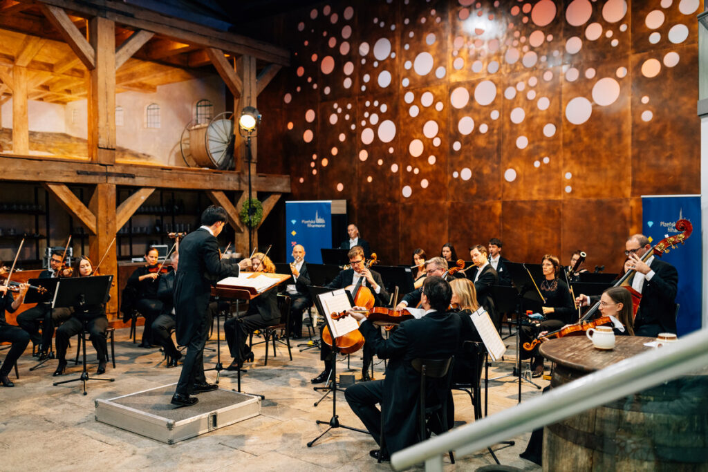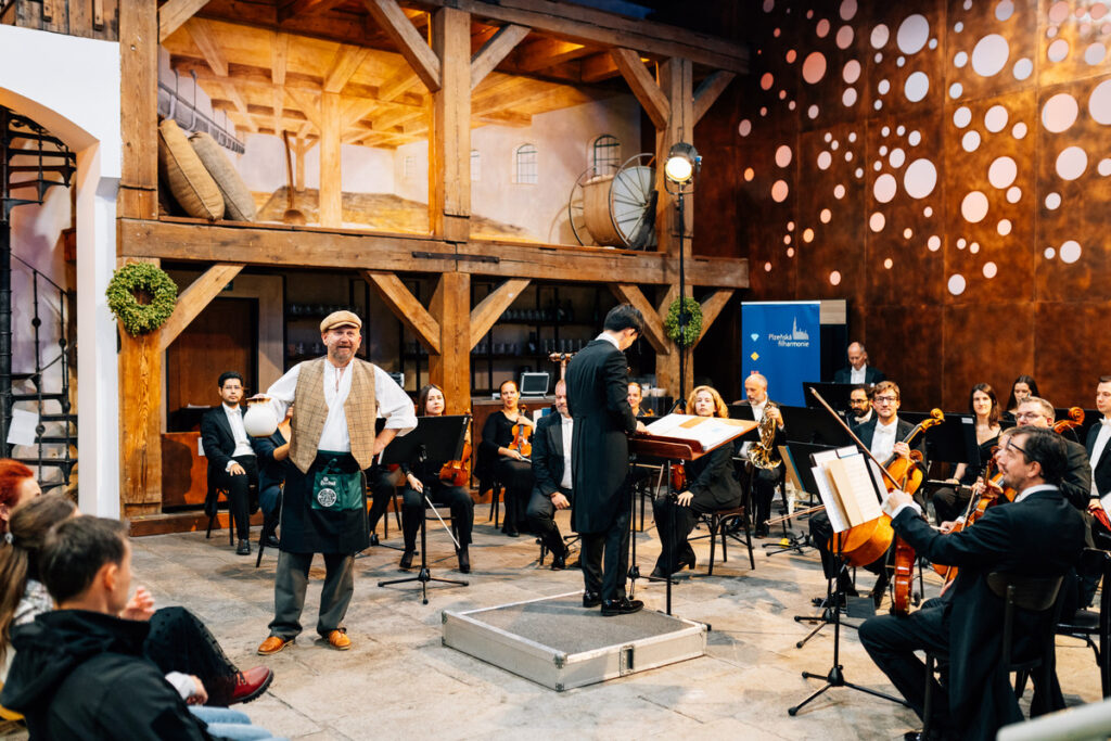 Oba subjekty se domluvily na tzv. mokré variantě. Bez velkoplošných obrazovek a světelných efektů poskytlo Návštěvnické centrum Plzeňského Prazdroje dost prostoru pro to, aby se do něj vešel symfonický orchestr ve zredukovaném obsazení smyčců, zároveň pak i velké množství diváků (bylo jich cca 270), kteří – soudě podle sportovního oblečení – byli zřejmě ochotni koncert zhlédnout i ve vytrvalém dešti.