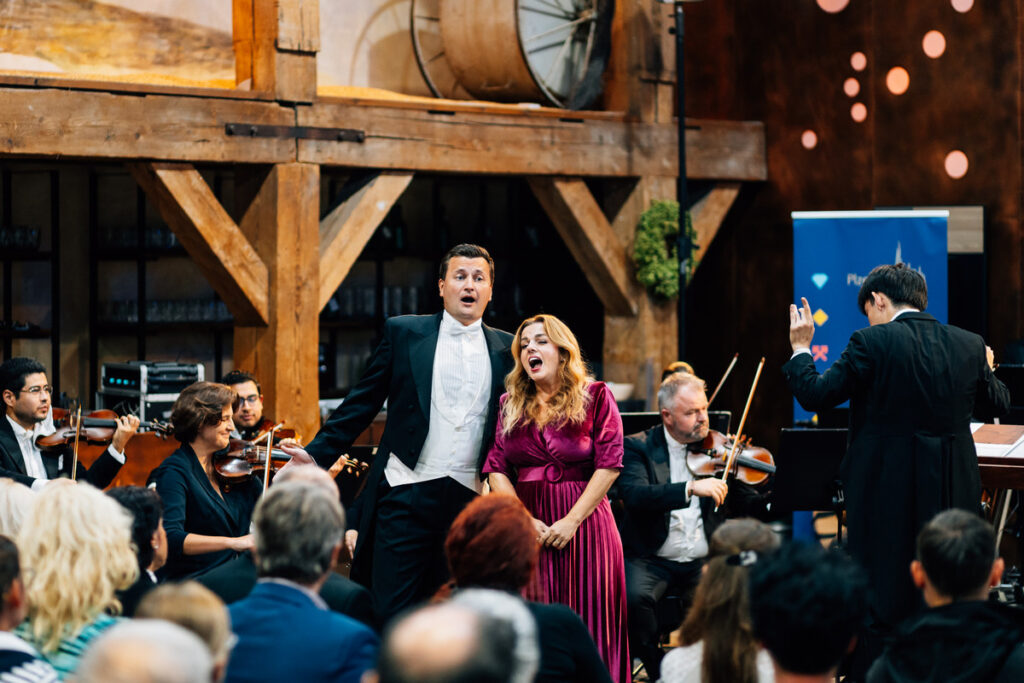 Diváci sice přišli absencí baletu Divadla J. K. Tyla o požitek z tance, nikoliv však o požitek ze zpěvu. Na malém prostoru v bezprostřední blízkosti publika se představili naši přední sólisté – sopranistka Jana Sibera, tenorista Josef Moravec a basista Jozef Benci. Byl to právě posledně jmenovaný slovenský pěvec, který si árií Palouckého z opery Hubička díky svému temperamentnímu a vtipnému podání okamžitě získal pozornost publika. Jozef Benci má náležitou techniku i požadovaný hlasový rozsah, takže této krátké, ale pro mnoho současných pěvců problematické árii nezůstal nic dlužen. Svůj barvitý hlas mohl náležitě uplatnit i k árii žalářníka Beneše ze skladatelova Dalibora. Smetanova Hubička byla připomenuta ještě dvakrát, a sice populární árii, jímž Barče vítá na začátku třetího dějství skřivánčí zpěv, a árií nešťastného Lukáše, který si ve druhém dějství zoufá nad svým počínáním. Jana Sibera se svého partu zhostila s nadhledem, její perfektní výkon jistě vyvolal u mnohých silné emoce, Josef Moravec zde s úspěchem zdolal záludnost výšek, stejně dobře se pak vyrovnal i s následující árií Jeníka ze třetího dějství Prodané nevěsty. Všemi jistě toužebně očekávaný duet Jeníka a Kecala z naší národní opery byl pro mnohé jistě umocněn přítomností nefalšovaného moku, jímž si oba protagonisté mohli připít na svůj úspěšný výkon. Prodaná nevěsta byla sólisty naší první scény Janou Siberou a Josefem Moravcem dále připomenuta árií Mařenky z prvního dějství a duetem Věrné milování. Velký ohlas prozradil, že se stále jedná o jeden z emblematických motivů české kultury, zdomácnělý nejen ve své původní hudební, ale i výtvarné podobě na mnoha reprezentačních či užitkových předmětech.