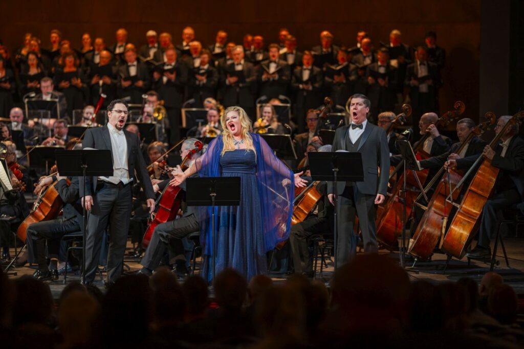 „Orchestr umístěný na jevišti už v předehře předvedl monumentální zvuk, který mu orchestřiště běžně nedovoluje, a zdálo se, že fyzické vyvýšení hráče pozvedlo i hudebně.“