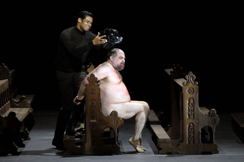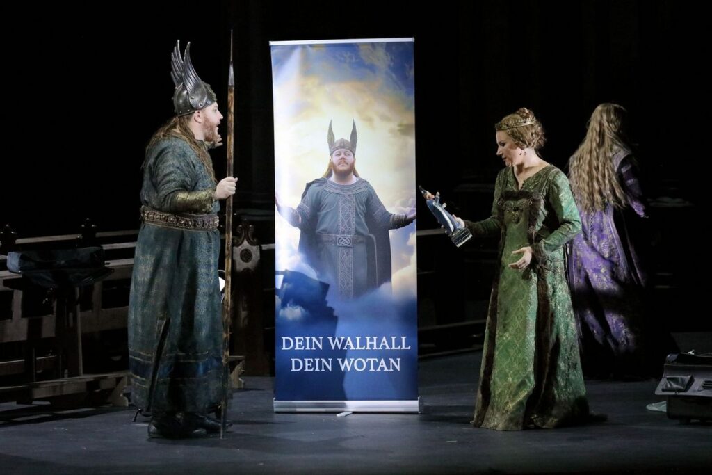 Pokladem v této inscenaci není zlato, jak předpisuje tvůrce opery, ale počítače s informacemi (dnes jsou data nad zlato). Teprve potom obři Fasolt s Fafnerem (v inscenaci v kněžském rouše s kolárkem), pustí Freiu na svobodu. V hádce o prsten Fafner zabije Fasolta – Alberichova kletba prstenu Nibelungova se začíná naplňovat. Bohové nestoupají po duhovém mostě do nově vybudované Walhaly, ale do obřího chrámového oltáře, jehož se stávají součástí. Režisérovi se do hereckých akcí i dotáček podařilo vložit několik komických scén, což v této opeře nebývá zvykem (např. v dotáčce na letišti, kdy ostraha nechce pustit žábu ve Wotanově plastové krabičce do letadla). Jak bude dále jevištní výklad tetralogie Tobiasem Kratzerem pokračovat, se dozvíme z dalších dílů, o kterých budeme naše čtenáře informovat.