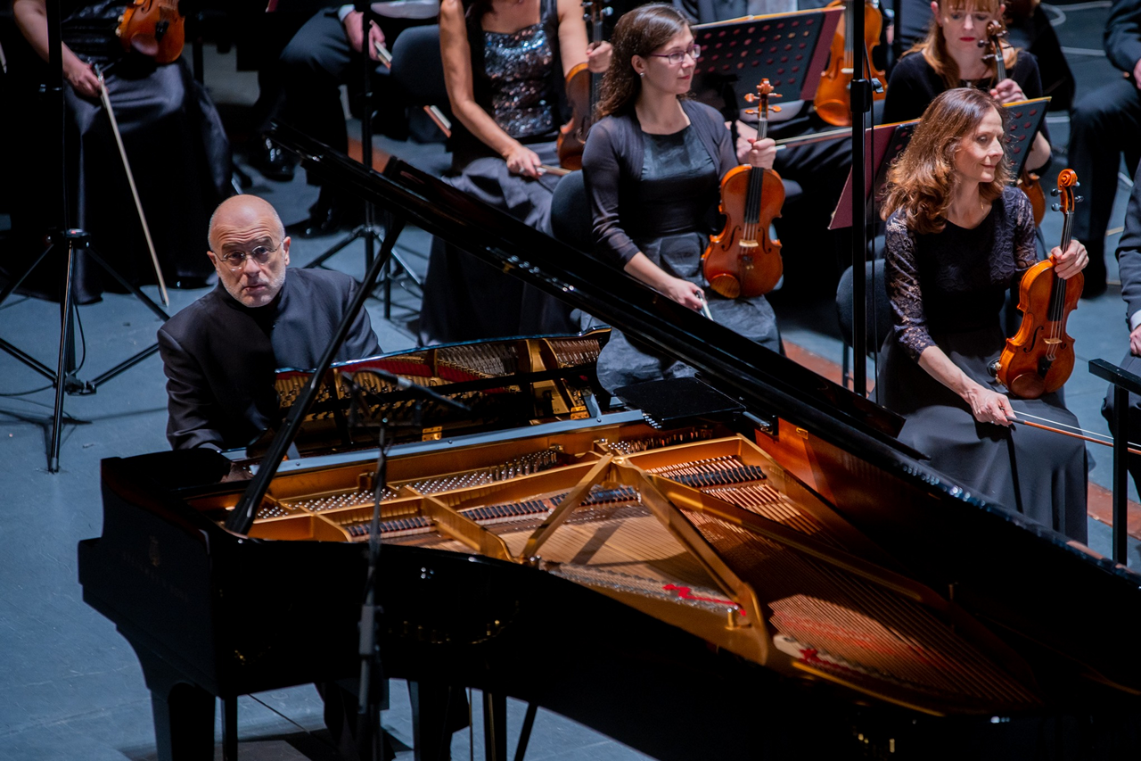 Druhou skladbou byl Klavírní koncert Jaroslava Ježka, legendárního skladatele Osvobozeného divadla, jehož písně dodnes žijí, stejně jako jeho Bugatti step. Ovšem jeho absolventský koncert, jehož prvního provedení se v roce 1927 ujala Česká filharmonie a klavírního partu se zhostil Václav Holzknecht, dnes zná málokdo. Uvedení na tomto koncertě bylo překvapivé, ale logicky zapadalo do dramaturgie koncertu. Klavírního partu se tohoto večera ujal italský klavírista Emanuele Arciuli, který se již v Brně představil na koncertě v roce 2018. Jeho výraz je sevřený a přesný, má těsný kontakt s orchestrem a obecenstvo překvapil tím, že koncert nehrál z not, ale nastavil si na pult klavíru notebook. Koncert je koncipován do tří částí, první Adagio quasi andante otevírá klavír s bolestným tématem a orchestr narůstá do fortissima, aby dal vzápětí prostor sólovým jasným houslím Marie Petříkové. Pochodové téma dokreslil klavír akordickou částí a orchestr gradoval do závěru věty. Druhá věta přinesla Tango se saxofonovým a kontrabasovým sólem, klavírní vstup připomínal improvizaci, doprovázenou rytmickou skupinou. Ve třetí části, Allegro vivace, převažovala orchestrální část, kde se uplatnila i siréna a klavír spolu s orchestrem spěchaly do energického závěru.