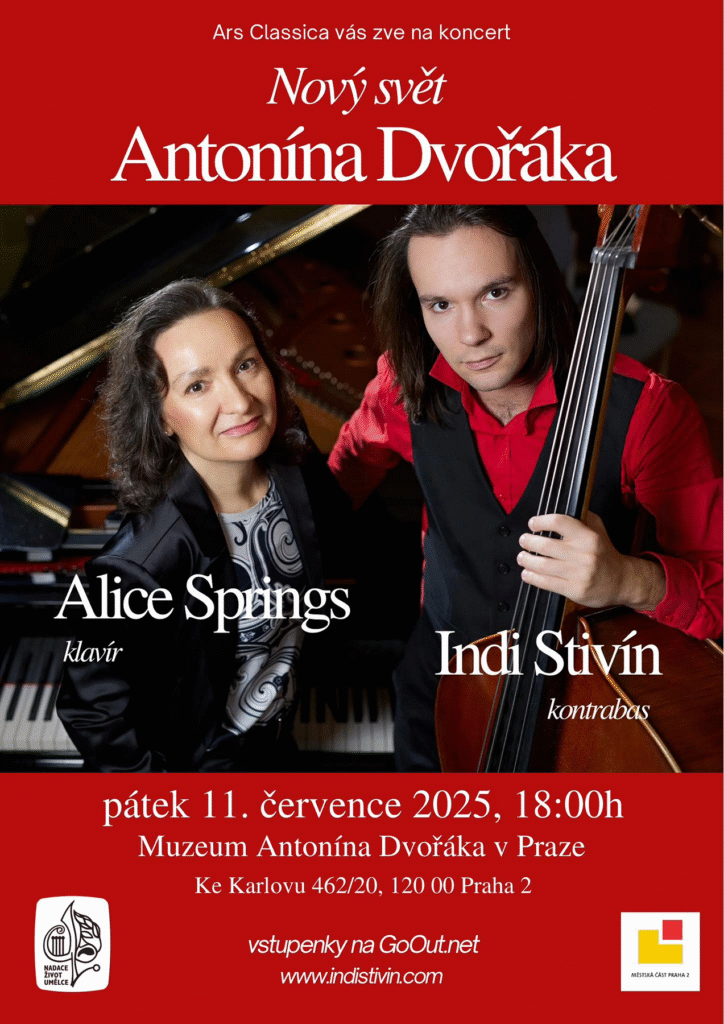 Červencový recitál Indiho Stivína v Muzeu Antonína Dvořáka v pražské ulici Ke Karlovu nabídne ryze český repertoár zaměřený zvláště na díla Antonína Dvořáka. Nadějného kontrabasistu doprovodí na klavír Alice Springs.