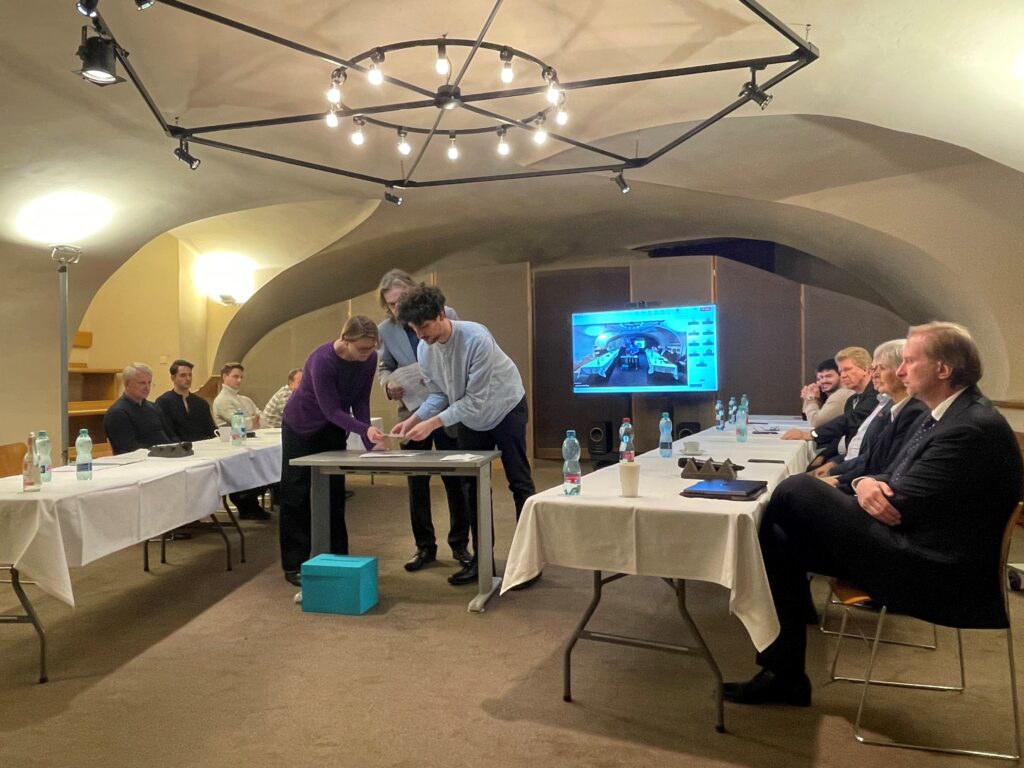 Po skončení shromáždění se uskutečnilo zasedání Akademického senátu HAMU pod vedením jeho předsedy doc. Iva Kahánka, na němž se hlasovalo o návrhu na jmenování nové děkanky či nového děkana, tedy o osobnosti, která v čele fakulty nahradí klavíristu prof. Ivana Klánského. Z celkového počtu třinácti hlasů získali v prvním kole shodně šest Leoš Čepický a Adam Halaš; Sylva Stejskalová zbylý jeden. Ani jeden z kandidátů tedy nezískal nadpoloviční většinu hlasů a do druhého kola postoupili Čepický a Halaš. Rozhodující druhé kolo hlasování už přineslo vítěze, kterým je Adam Halaš. Získal sedm z celkových třinácti platných hlasů a zvítězil tedy nejtěsnějším možným rozdílem. Funkční období mu začíná 1. února 2026. Návrh Akademického senátu ještě předtím musí schválit rektorka Ingeborg Radok Žádná.