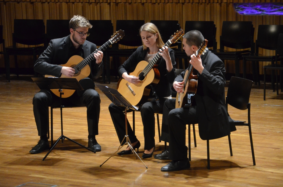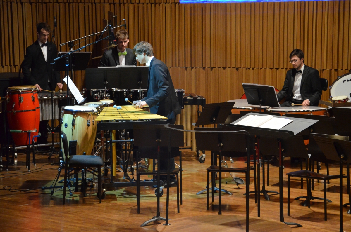 Velice pestrý program zahájí Žesťový soubor pod vedením prof. Jiřího Šedivého, který zahraje Londýnské miniatury (London Miniatures) před dvěma lety zesnulého anglického skladatele Gordona Langforda. Studenti komorní hry ze třídy Pavla Tylšara – flétnistka Jana Kynkorová, hobojistky Dominika Macejová a Aneta Hodaničová, klarinetisté Natálie Hrdová a Václav Chaun, fagotisté Jan Kravárik a Jakub Čech a hornistky Jana Žemličková se Zuzanou Meierovou – přednesou dvě věty z Gounodovy Malé symfonie (Petite symphonie) a část z nich Preludio z Dechového kvintetu Pavla Haase. Houslistka Gabriela Barillová a akordeonista Filip Kratochvíl z komorní třídy prof. Josefa Hřebíka přednesou dvě části ze Suity ve starém stylu Alfreda Schnittkeho a flétnistky Pavla Kavalíková s Janou Kynkorovou ze třídy Jana Riedlbaucha zahrají Martinů Divertimento pro dvě flétny. Pedagog M. Plechatý vede studentské klarinetové kvarteto, které se ukáže ve Smetanově Skočné, ukázce z Bizetovy Carmen a v Uherském tanci č. 5 Johannesa Brahmse. Trombónisti Lukáš Besuch, Veronika Lédlová, Matěj Vošický a Bohumil Tůma ze třídy V. Ferebauera si vybrali skladbu Jeffreyho Agrela Gospel Time a Oxford Street Bohumila Tůmy.