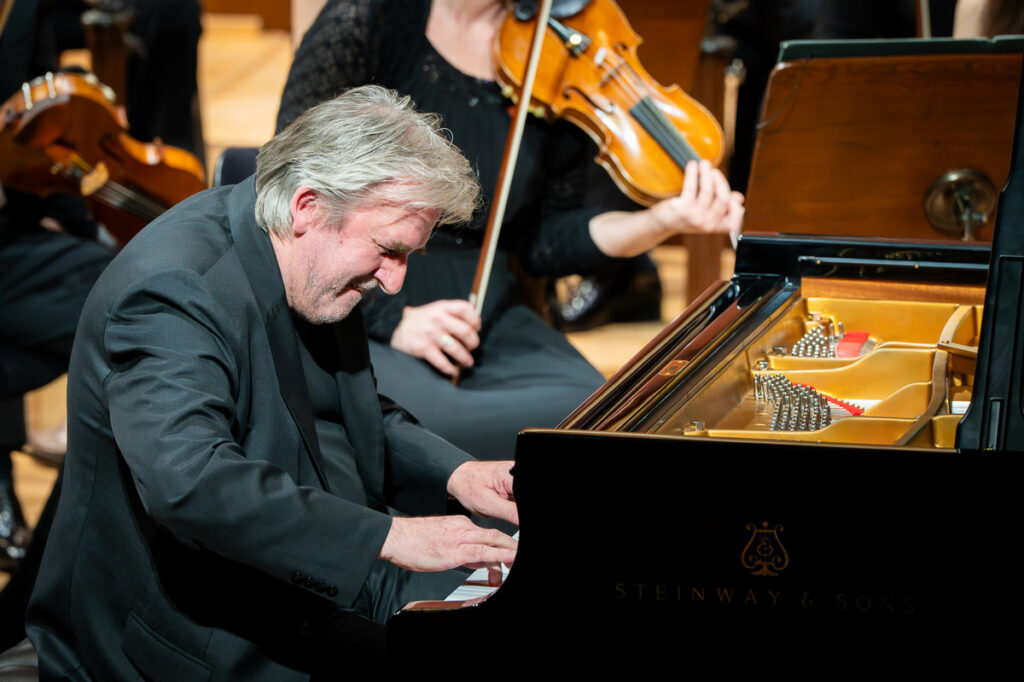 Beethovenův „Císařský“ je ze všech pěti skladatelových klavírních koncertů nejefektnější a patří k nejhranějším klavírním koncertům vůbec. Douglas ho natočil v roce 2005, má ho tedy na repertoáru přinejmenším dvacet let. Už z úvodních tří sólových kadencí první věty bylo zjevné, že pianista má tuto skladbu dokonale zažitou. Hrál je všechny s naprostým nadhledem a se suverénní jistotou. Smyčce, které nastoupily po kadencích s hlavním tématem, působily zpočátku trochu matně, ale ve chvíli, kdy se k nim připojily dechy, zvuk orchestru zpevněl a rozzářil se. Douglas hrál celou první větu po technické stránce velmi dobře, těžko by se mu dalo něco zásadního vytýkat. Na druhé straně nebylo možné přeslechnout, že se jedná o pianistický výkon značně rutinní a dost neosobní. Na začátku volné věty jsme si mohli naplno vychutnat sametově měkký zvuk smyčců. Pianista hrál tuto větu klidně, vyrovnaně, ale poměrně monotónně, bez jemnějších výrazových nuancí, v místech se silnější dynamikou skoro až tvrdě. Nejlépe nakonec vyzněla věta finální. Jak orchestr, tak klavírista ji hráli s chutí, s elánem a se skvělým rytmickým tepem, podpořeným v hlavním tématu svítivými sforzaty, a dovedli ji k impozantnímu závěru, který strhl publikum k velkému potlesku. Barry Douglas se nenechal dlouho prosit a přidal ještě Intermezzo E dur, op. 116/4 Johannesa Brahmse. Přednesl tuto křehkou lyrickou drobnost neobyčejně citlivě a s tak hlubokým pochopením, až se zdálo, že k nástroji usedl jiný klavírista než ten, který před chvílí dohrál Beethovena.