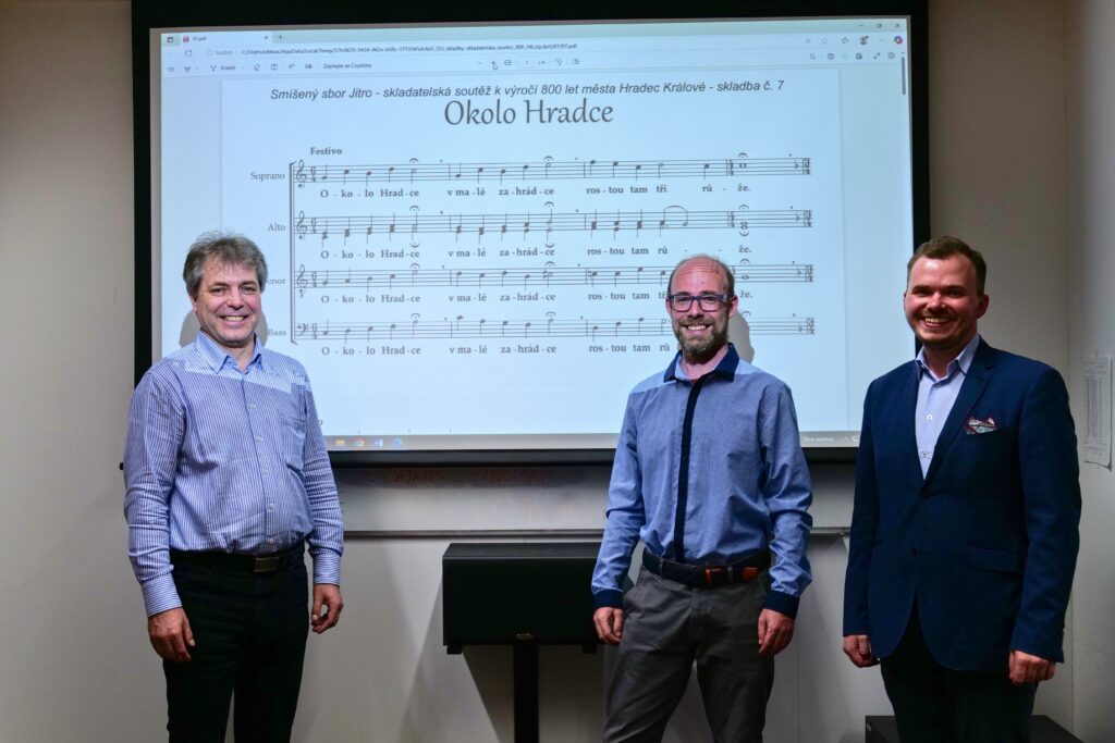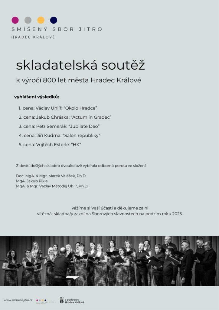 V kompoziční soutěži iniciované Smíšeným sborem Jitro z Hradce Králové byla poptána skladba určená pro smíšený sbor bez instrumentálního doprovodu se zapojením všech čtyř hlasových skupin a možností dělit soprány a alty. Skladba využívající vlastní či převzatý text měla trvat v rozmezí tří až šesti minut a měla se obsahově týkat výročí či alespoň města Hradec Králové. Z přihlášených devíti skladeb porota, v níž zasedli dirigent, sbormistr a pedagog Marek Valášek, sbormistr Jakub Pikla a sbormistr pořádajícího sboru Václav Metoděj Uhlíř, na základě anonymizovaného hodnocení vybrala kompozici Okolo Hradce od Václava Uhlíře. Druhé místo obsadil se skladbou Actum in Gradec Jakub Chráska, na třetím místě skončil Petr Semerák se sborem Jubilate Deo.
