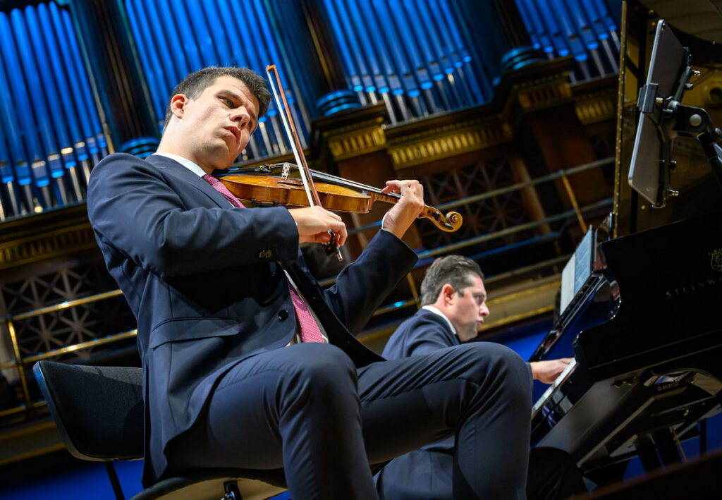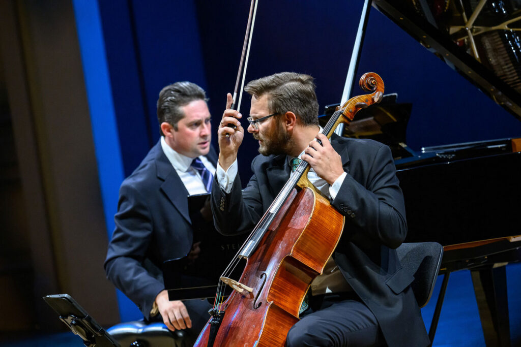 Lukáš Klánský se klavírního partu Elegického tria chopil s elegancí a respekt budící tónovou kulturou. Současně vystihl autorovu mladistvou energii vloženou do návalů emocí, které se dynamicky vzepjaly v appassionatu před finálním funebrem. Houslista Jan Mráček a Ivan Vokáč u violoncella (oba koncertní mistři České filharmonie) se na strhujících proměnách tématu, dynamice a výrazu nejen podíleli, ale také je rozhodně spoluvytvářeli. Romantický charakter zdobili a dotvářeli poutavou barvou tónů svých nástrojů nejen v pasážích jim svěřených, ale v celé souborové harmonii.