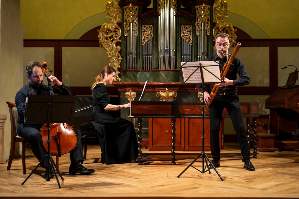 Jako první skladba zazněla Fagotová sonáta C dur FWV N:c1 od Johanna Friedricha Fasche v podání Ondřeje Šindeláře (barokní fagot), Petra Mašlaně (violoncello) a Jiřiny Marešové (cembalo). Všichni tři hráči se skvěle doplňovali, citlivě si naslouchali a když jsem zavřela oči, měla jsem pocit, jako by hudbu tvořil jeden člověk. Fagot proplouval mezi tóny elegantně a hravě, nenuceně a současně výmluvně, violoncello zvuk dobarvovalo a spojovalo a cembalo celek dozdobilo a dodalo harmonickou základnu. Interpreti zvolili v pomalejších částech právě takový výraz (což se projevilo i na tempu), aby se jednotlivé fráze nestihly rozpadnout na fragmenty, aby hudba plynula od začátku až do konce. Přednášeli skladbu s porozuměním a obrovským citem pro barokní estetiku. Rychlejší části dávaly vyniknout technické zdatnosti Ondřeje Šindeláře a jeho neuvěřitelné dechové výdrži. Hrál na fagot s trochou nadsázky tak, jako by vyprávěl svému příteli zajímavý příběh: s naprostou samozřejmostí, lehkostí, citem a nadhledem, jako by to nic nebylo. Sečteno, podtrženo, z interpretů dýchala profesionalita, něco „královského“, a bylo cítit, že hudbu milují.