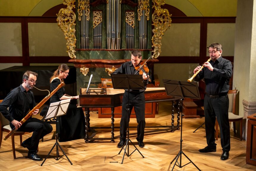 Poslední skladbou před přestávkou bylo Concerto à 4 pro housle, violoncello, fagot a basso continuo od Antonína Reichenauera. Ocenila jsem, že do programu bylo zařazeno tolik českých skladatelů. Kompozice českých autorů jsme následně slyšeli i ve druhé polovině koncertu. Reichenauerova skladba zazněla v podání Jiřího Sychy (housle), Petra Mašlaně (violoncello), Ondřeje Šindeláře na barokní fagot a Jiřiny Marešové na cembalo.