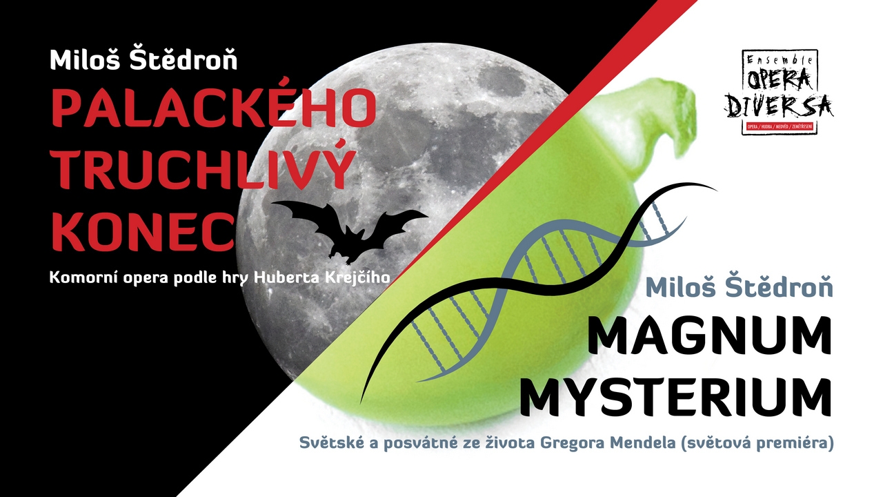 Ensemble Opera Diversa odehraje ve středu 22. června v 19 hodin koncert v prostorách atria Filozofické fakulty Masarykovy univerzity. V dalších dnech soubor nabídne dvě komorní opery Miloše Štědroně – fantasmagorickou upíří vizi otců českého národa a apokryfní obraz ze života Johanna Gregora Mendela, zakladatele genetiky a jednoho z nejvýznamnějších světových vědců. Obě díla uvede Ensemble Opera Diversa při příležitosti dvoustého výročí Mendelova narození. Palackého truchlivý konec zazní v pátek 24. června v novojičínském Muzeu, obě opery – Palackého truchlivý konec a Magnum mysterium pak 26. června v Co.Labs v Kounicově ulici v Brně.
