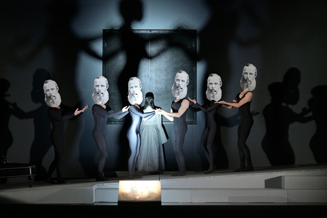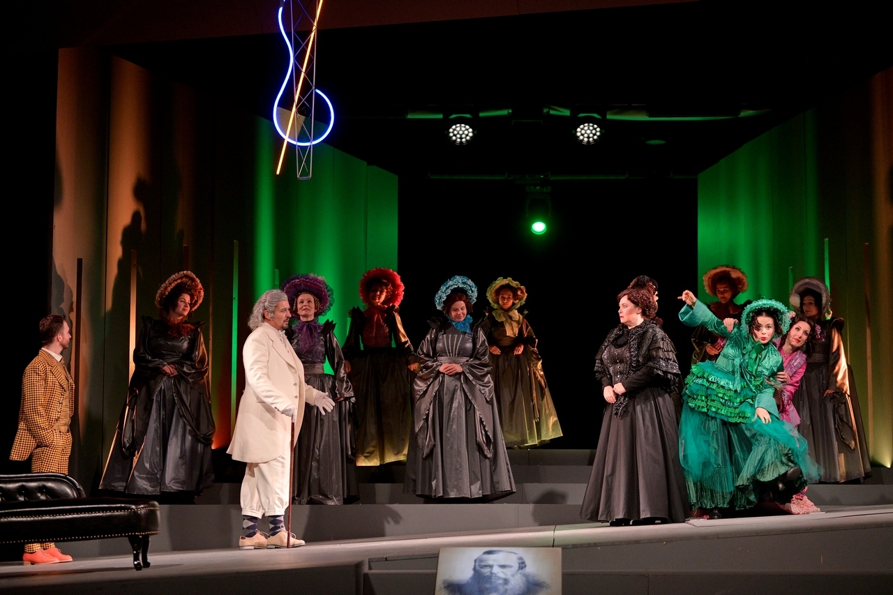 Sbor se vyznamenal zejména díky dámské části, kdy se místní drbny nahrnuly na předpokládané zásnuby a kdy odvedly spolu se sólisty obdivuhodný výkon, především díky pečlivé přípravě sbormistra Jurije Galatenka. Zajímavé vstupy do meziher měl balet v upnutých trikotech v černé barvě s maskami Dostojevského na hlavách a v tělových trikotech, kdy měli na hlavách plastikové průhledné krychle, ve kterých se snad ani nedalo dýchat. Přesto odvedli přesnou a stylovou práci, díky pohybové spolupráci španělského tanečníka a choreografa s exotickým jménem, Yaga Catalinase Heredii, který spolupracoval s choreografkou Janou Tomsovou.