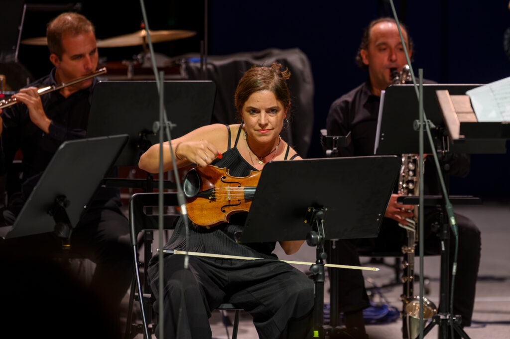 Prvú polovicu večera zakončilo dielo Maják Martina Klusáka – štandardná orchestrálna kompozícia, ktorá by sa žánrovo dala pripodobniť k akémusi symfonickému obrazu. Ako autor píše, predstava majáku asociuje dve možnosti: vykročiť do burácajúceho mora, alebo ustúpiť a hľadať cestu ostrovom. Poslucháč určite zachytí obe tieto alternatívy, aj bez zľahka programového určenia by však skladba fungovala. Klusák tu totiž skvele stavia na svojej schopnosti obrazotvornosti. Skladbu, nezriedka celkom dramatickú a strhujúcu, tak môžeme sledovať s podobným zážitkom ako napríklad film: avšak s tým, že si za hudobné deje môžeme dosadiť aj vlastnú vizuálnu predstavu. Ako pozitívum tiež vnímam, že sa Klusák nespoľahol len na efekt „mimohudobných“ princípov. Dal preto skladbe do vienka aj dostatočne nosné hudobno-štrukturálne riešenia. Vo väčšine skladby sú prítomné ostinátne figúry, na ktorých pozadí potom zaznieva ďalší materiál. Vlastne som o skladbe postupne začala uvažovať trochu ako o passacaglii. Figúry sú totiž prítomné vo väčšine skladby, s výnimkou ostro kontrastného, postupne sa rozpínajúceho bloku, kde znejú perkusie (hra sláčikom) a dychové nástroje v stratosferických polohách. ONO pod pevnou taktovkou Bruna Ferrandisa podalo veľmi dobrý výkon, vrátane exponovaných sólových liniek – neboli vždy dokonalo presné, svoju rolu ale plnili.