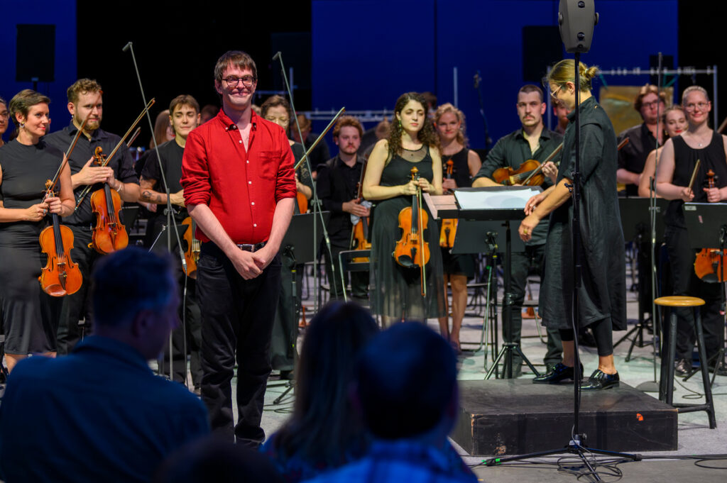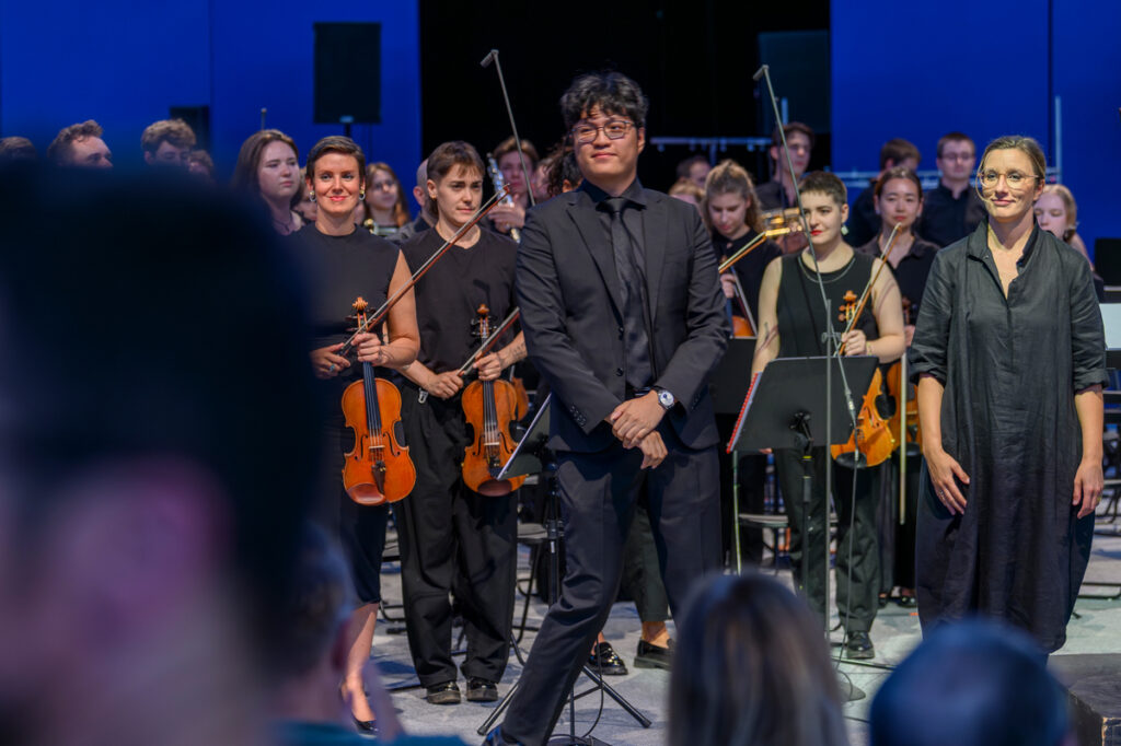 Wei-Shiang Chang, tchajwanský skladateľ a tohtoročný rezident Institutu, sa na koncerte uviedol päťminútovou skladbou In a Distant Valley. V skladbe sa inšpiruje kultúrou etnika Hakka a zachycuje fenomén ich spevov, unášaných vetrom po hornatej krajine. Znázornenie vetra je prítomné v celej skladbe, niekde ho autor dokonca vyžaduje explicitnými predpismi („like the wind blowing“). Celkom jasne tiež zaznieva vďaka nástroju waterphone. Väčšinou ale autor vietor a s ním aj útržky piesní zhudobňuje jemnejšími prostriedkami. Používa tak zvukomalebné rozšírené techniky – breath tone u dychových nástrojov, či zmeny faktúry, ako osamostatnenie niektorej linky, napríklad prvých huslí (výborné sólo Anna Fliegerová Romanovská). Najviac ale podľa mňa atmosféru tvorila určitá práca s pohybom. Autor v jednotlivých zložkách často predpisuje krátke poklesy a nárasty, čím dosahuje efekt poryvov. Možno trochu popisná, stále ale autentická a účinná skladba.