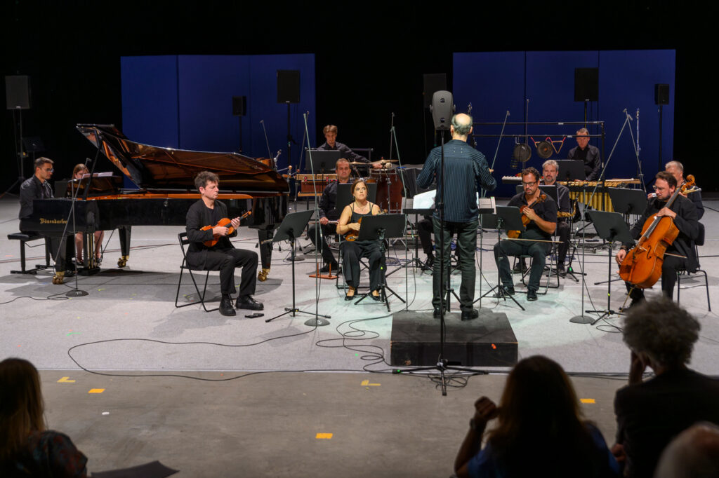Smerom k naozaj radikálnej objektivite a odosobneniu sme sa potom posunuli vďaka skladbe Christiana Wolffa. Posledný žijúci člen legendárnej newyorskej školy strieda v skladbe The Blue Stairs presný predpis parametrov s úsekmi, v ktorých necháva niektoré rozhodnutia na interpretoch. Hráčom ale samozrejme stanovuje celkom jasné hranice (hlavne časové úseky, v ktorých majú zvuk zahrať), v štruktúre tak tieto plochy nepôsobia zas až tak cudzorodo. The Blue Stairs, ktorú dirigoval Petr Kotík, môže trochu pripomenúť punktualistické postupy. Aj preto ide o štruktúru, ktorá toho veľa odhaľuje – napríklad čo sa týka interakcií hráčov. Medzi najzaujímavejšie interakcie pritom patrili tie, v ktorých boli zapojení sólisti: violista Nikolaus Schlierf a perkusionista Chris Nappi. Premýšľala som, do akej miery sa dá o tomto diele uvažovať ako o nástrojovom koncerte – a hoci sa táto škatuľka síce nezdá dostačujúca, koncertantné princípy každopádne použité boli. Navyše, práve sólové party prinášali asi najpôsobivejšie momenty, aj keď nesršali konvenčnou brilantnosťou. Wolff je v skladbe zdržanlivý, akákoľvek zmena pôsobí v tomto kontexte veľmi výrazne. Prevažuje ale dojem pomerne málo odlíšených dejov na veľkej ploche. Je to, samozrejme, cielený postup, nemala som však pocit, že by v Trojhalí s publikom príliš rezonoval. Možno je to aj umiestnením v dramaturgii, takáto skladba predsa len vyžaduje celkom iné posluchové stratégie, na ktoré, priznám sa, som tentokrát zrejme nedokázala „naskočiť“ ani ja.