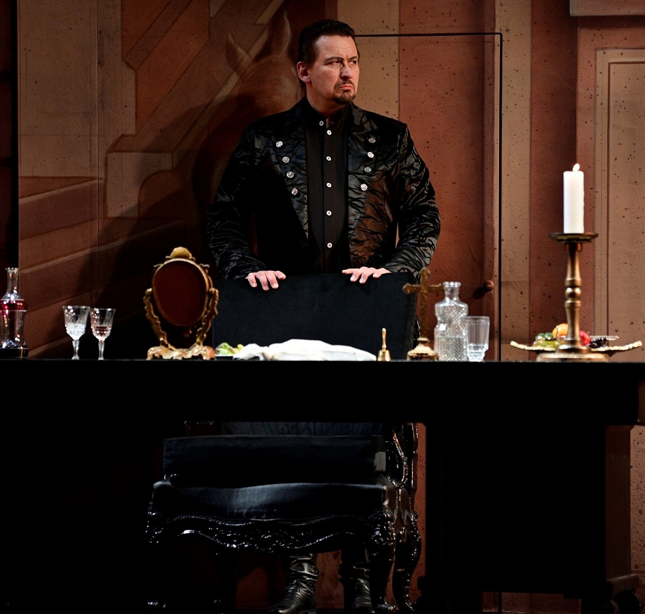 Snad to není jen dojem, ale přes všechnu dramatičnost vyvolává ostravská inscenace, alespoň v podobě zprostředkované TV Noe, o něco lyričtěji dojem. V tempech, v hudebním výraze. Orchestr působí spolehlivě, stejně jako sbor, umístěný v rámci protipandemických opatření distančně na balkoně divadla. Pěvci hrají naplno, do detailů gest a výrazu tváře. Na nevelkém jevišti Divadla Antonína Dvořáka a v koncepci inscenátorů to není výrazně mrazivé, krvavé drama, jdoucí na dřeň. Ale vážné, působivé, dojemné, smutné, melodramatické hudební divadlo rozhodně ano. Až k závěrečnému sebevražednému skoku Toscy z Andělského hradu, naznačenému téměř poeticky – volně se snášejícím závojem.