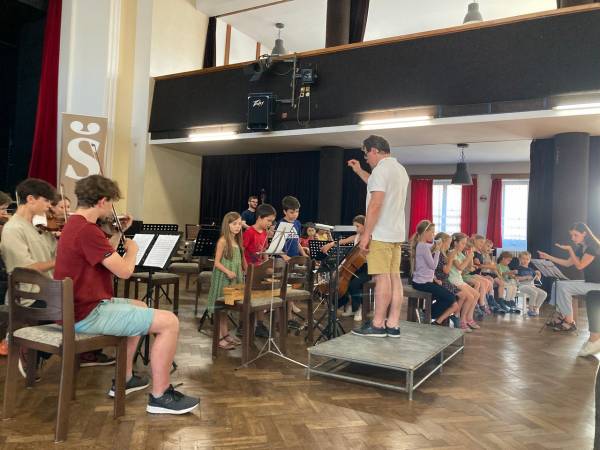 A proč tak rozsáhlý lektorský tým? Letos přijelo do Horažďovic dvaatřicet účastníků Ševčíkovy akademie do osmadvaceti let a šestnáct se zúčastnilo Akademie junior ve věkovém rozpětí osm až patnáct let. Už tradičně akademii doplňuje Školička Otakárek, kde pod vedením Evy Jamníkové a Nikoly Bartošové rozvíjejí svoje hudební vlohy děti od čtyř let. Je roztomilé sledovat vyvrcholení jejich týdenní práce – tradiční sobotní ranní koncert na horažďovickém zámku plný radosti, nadšení, ale i trémy a ostychu. Zkrátka se vším všudy, co k uměleckému vystoupení patří. Korepetování se ujímají jak Hana Louženská, tak Jakub Hrůša, který v tom týdnu cestuje mezi Salcburkem, kde diriguje Káťu Kabanovou, a Horažďovicemi, kde vede orchestr mladých, který v ten večer zazáří na open air gala koncertu na náměstí.