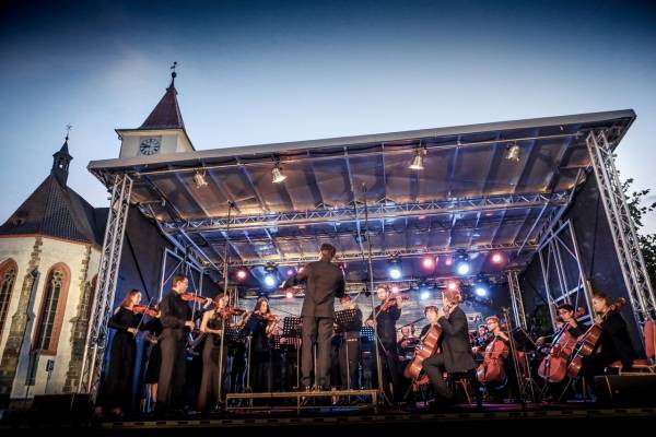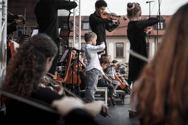 Okamžik pravdy nastal v sobotu 13. srpna. Na pódium nastoupili jak „seniorní“ akademici, tak jejich kolegové z juniorky, ba i Otakárci, kteří si opět po roce s chutí a uvolněností příznačnou pro jejich věk zamuzicírovali v první větě Dětské symfonie Edmunda Angerera (dříve připisované Leopoldu Mozartovi). V orchestru usedají i lektoři – na první židli Jan Fišer, violoncellovou skupinu vede Tomáš Jamník, zajímavé je obsazení viol, kde mladým „vypomáhají“ Josef Špaček a Jiří Kabát. Koncert otevírá Etuda č. 5 Otakara Ševčíka, v níž se představují muzikanti všech věkových kategorií. Je až dojemné sledovat, s jakou vážností brnkají čtyřletí caparti pizzicato na jedné struně, a současně vnímat profesionalitu dospělých studentů. Před janáčkovským vyvrcholením večera, který moderoval herec Martin Myšička, známý svým blízkým vztahem ke klasické hudbě, zazněl Griegův Norský tanec, zahraný s chutí a elánem. Ve Suitě pro orchestr Leoše Janáčka Jakub Hrůša navázal na program předcházejících let. Po předloňské Sukově Serenádě Es dur a loňské Dvořákově Serenádě E dur zvolil letos Janáčka, kterého se muzikanti zhostili skvěle. Vřelý jemný zvuk, vypracované fráze, postupně budovaná dynamika, oddání se tanečnosti hudby a současně náznaky dramatičnosti byly ozdobou tohoto provedení. Dlouhotrvající potlesk se nesl setmělým náměstím, jemuž dominoval osvětlený gotický kostel svatého Petra a Pavla.