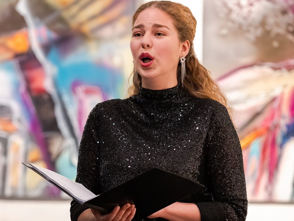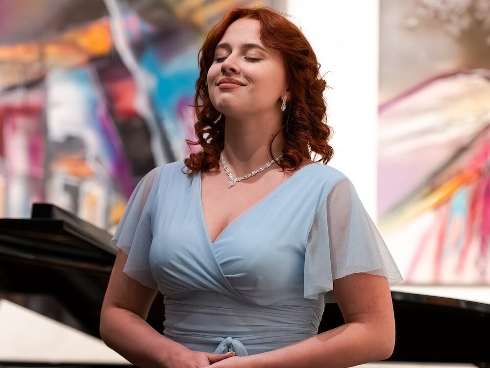 Po přestávce přišla předvést svůj um další sopranistka Karolina Krejčí. V úvodu jejího vystoupení, totiž výňatku z Poulecových Maličkostí, FP 107, jsem reálně uvažoval, zda nedošlo k omylu u informace o hlasovém oboru – pěvkynina nižší poloha je na soprán nečekaně plnokrevná… Zajímavou interpretaci, která nespoléhala na notový stojan, Karolina doprovázela odvážnou gestikou a intonačně byla přesvědčivá. Zpěv je technicky propracovaný, což je kompliment a zároveň otázka, zda se pod vrstvou techniky už nezačíná ztrácet vlastní barva. Hlavně u následného Dvořáka, výběru z jeho Čtvera písní, op. 2, bych určitě ocenil pěvecký projev trochu prostší, méně operní… I druhou ze zpěvaček jistě doprovázel Egor Biriucov, který prokázal veliký, obdivuhodný výrazový cit. Jediná poznámečka k jeho výkonu by byla, že dozní-li některá z písní (nebo jakýkoli jiný hudební celek), je vhodné nechat ji dostatečně dlouho doznít v tichu, skladbu prodloužit o napjaté tacet, až pak povolit a připravovat další noty.