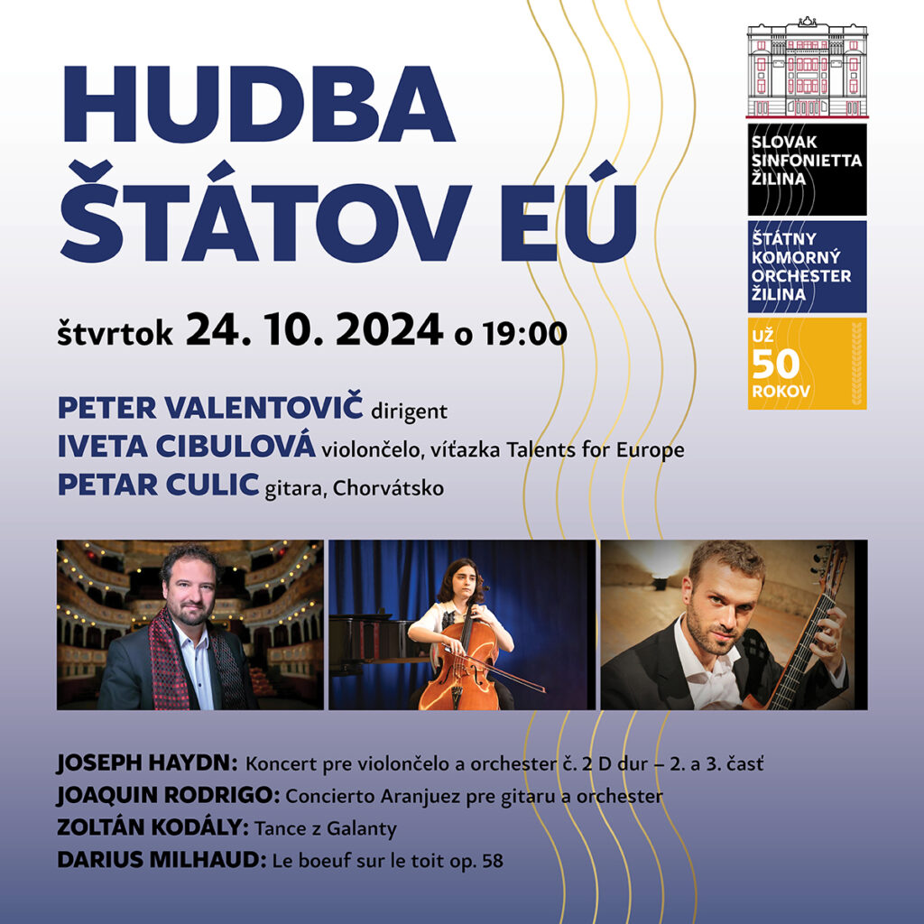 Program složený z děl rakouské, španělské, maďarské a francouzské hudby zazní na úvod sezony Státního komorního orchestru Žilina. Stane se tak v podání debutantů abonentního cyklu, dirigenta Petra Valentoviče, chorvatského kytaristy Petara Čuliće a vítězky soutěže Talents for Europe, violoncellistky Ivety Cibulové. Koncert se koná 24. října v Domě umění Fatra.